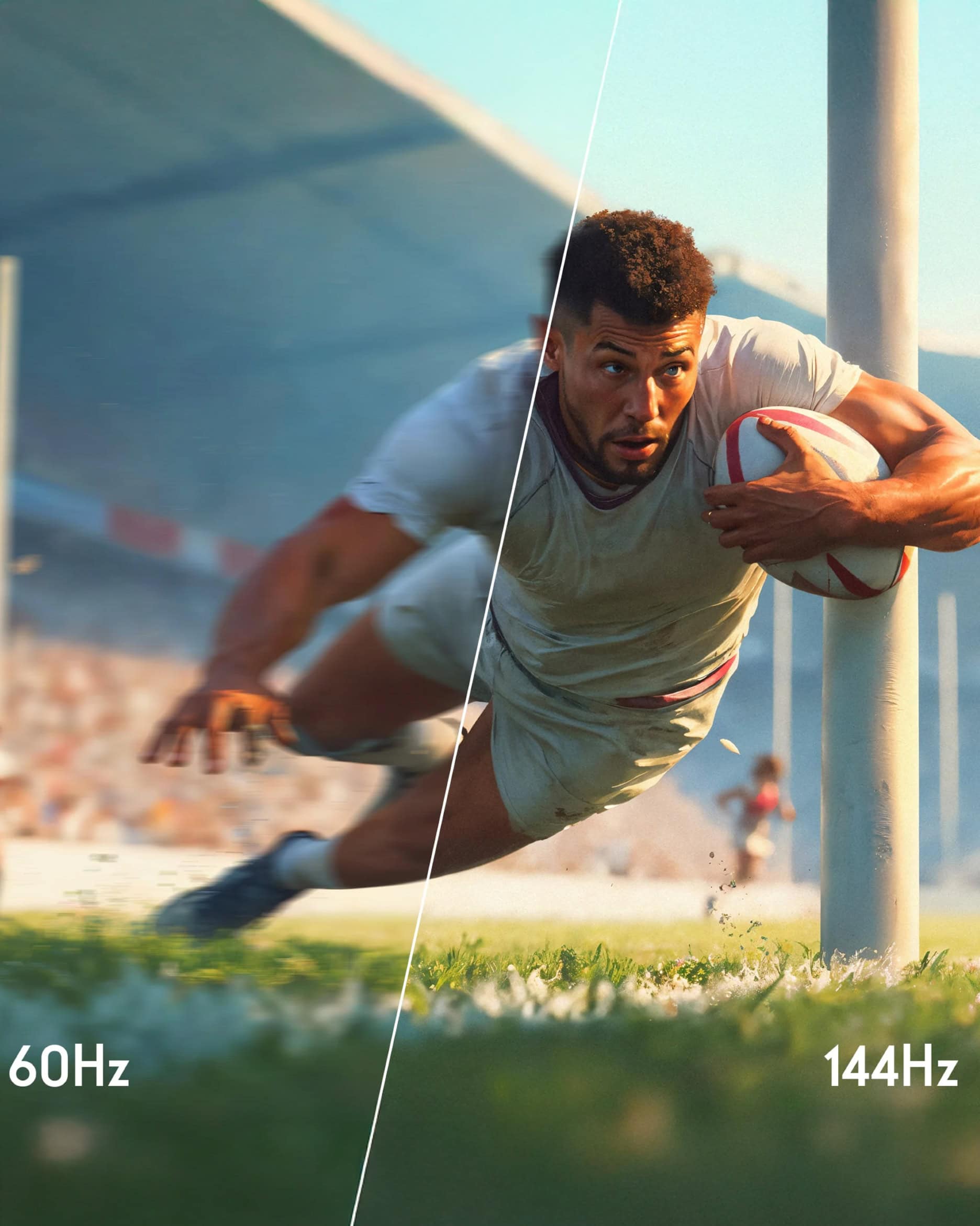 Panel Thomson 100QG7S14 natívne pracuje na frekvencii 144 Hz, čo zabezpečuje vysokú plynulosť pohybu. Táto vlastnosť je dôležitá nielen pre hráčov hier, ale aj pre elimináciu rozmazania pri rýchlych scénach v akčných filmoch či športových prenosoch. Thomson 100QG7S14 podporuje formáty vysokého dynamického rozsahu (HDR), konkrétne HDR10 a pokročilý Dolby Vision i HLG.