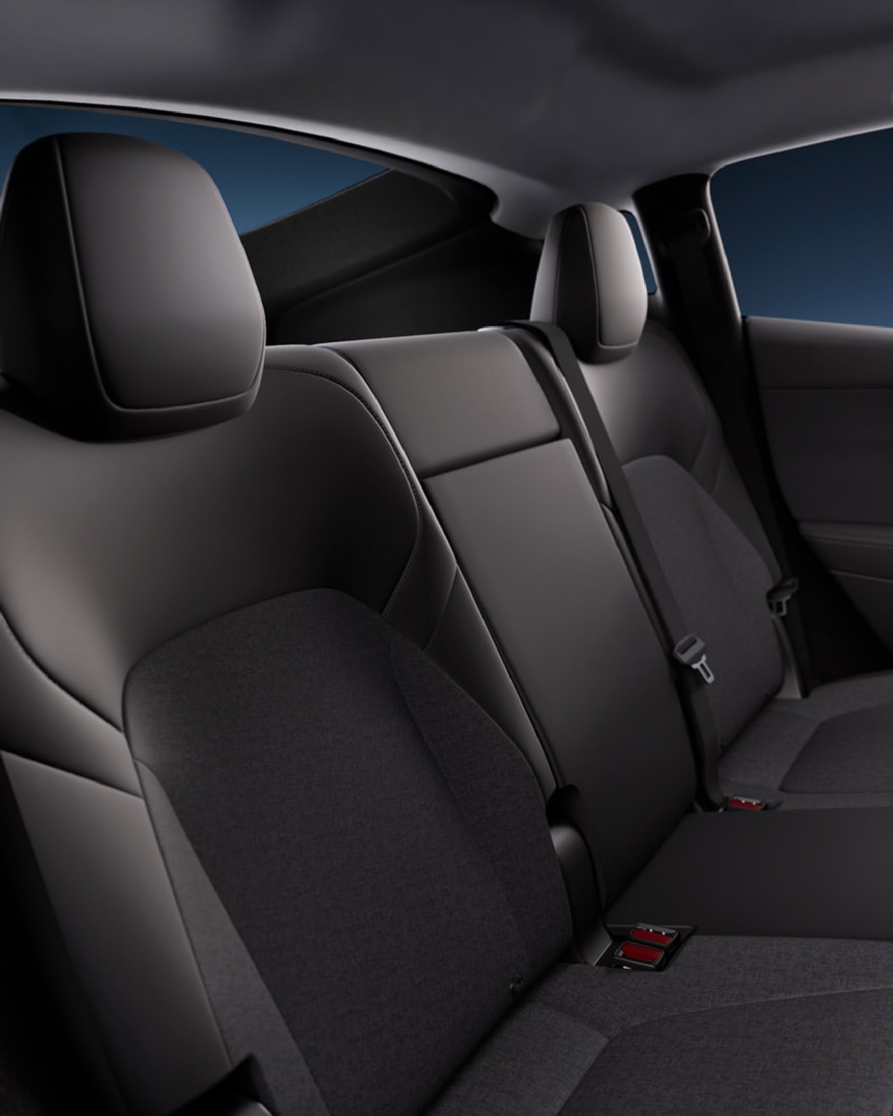 Najviac zmien sa udialo v interiéri a komfortnej výbave, kde boli mnohé prémiové prvky odstránené alebo nahradené lacnejšími alternatívami. Najvýraznejšia zmena je panoramatická sklenená strecha, ktorá bola jedným z poznávacích znakov Modelu Y. V štandardnej verzii bola nahradená pevnou strechou s textilným čalúnením.