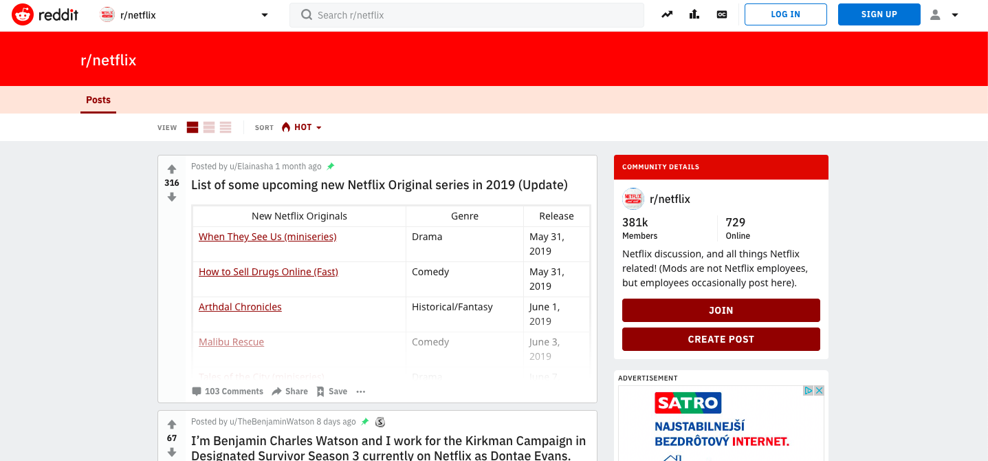 Najpopulárnejšie fórum na internete ponúka perfektné informácie aj o Netlixe. Zo všetkých uvedených stránok ponúka práve Reddit aktuálne novinky a zákulisné informácie a to okamžite, keďže používatelia posúvajú najlepšie témy na vrchnú stranu. Hlavnou devízou je komentárová sekcia, do ktorej sa viete zapojiť a byť súčasťou najväčšieho diskusného fóra na svete.