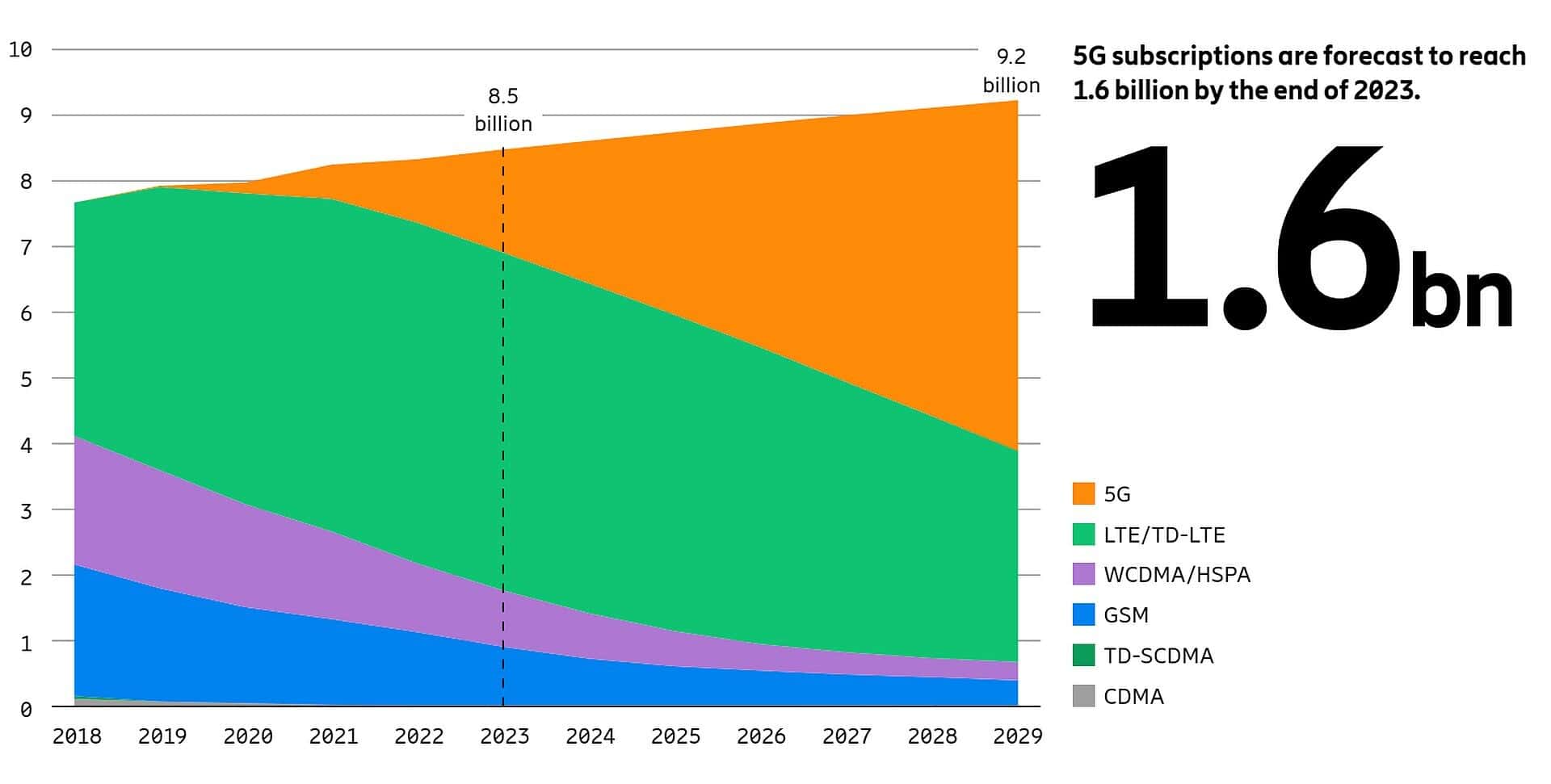 Zatiaľ je ešte 5G stále minoritnou technológiou oproti 4G, ale úspešne rastie. Z historického hľadiska ide o najrýchlejší rast penetrácie v porovnaní so všetkými doterajšími technológiami mobilných sietí (1G až 5G). Ericsson odhaduje, že takmer jedna pätina všetkých globálnych mobilných účastníkov bude do konca roka 2023 v sieťach 5G, napriek ekonomickým turbulenciám a geopolitickým nepokojom na niektorých trhoch.