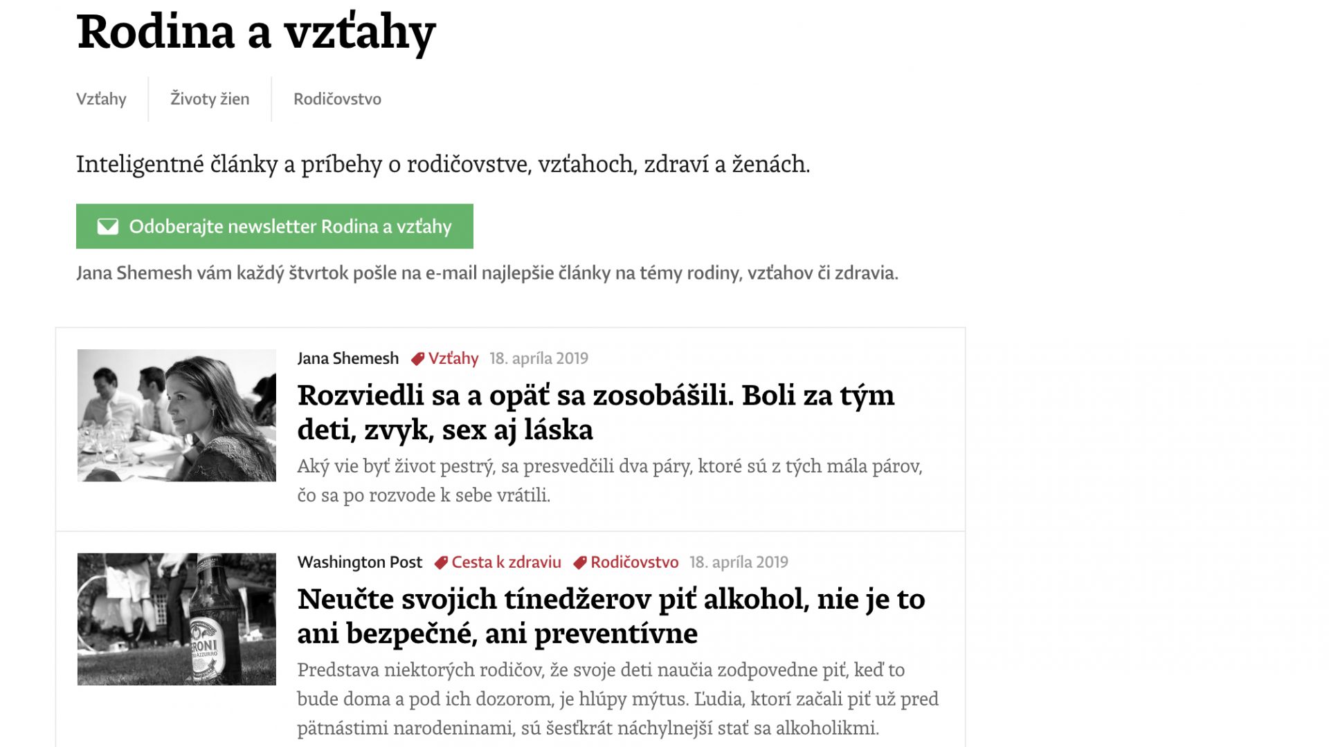 Mienkotvorný denník SME má samozrejme aj svoju webstránku, kde nájdeme nielen spravodajstvo, politiku a šport, ale aj kvalitné pokrytie voľnočasových tém pre svojich čitateľov. Či už ide o kultúru, auto, sekciu pre ženy či zdravie.