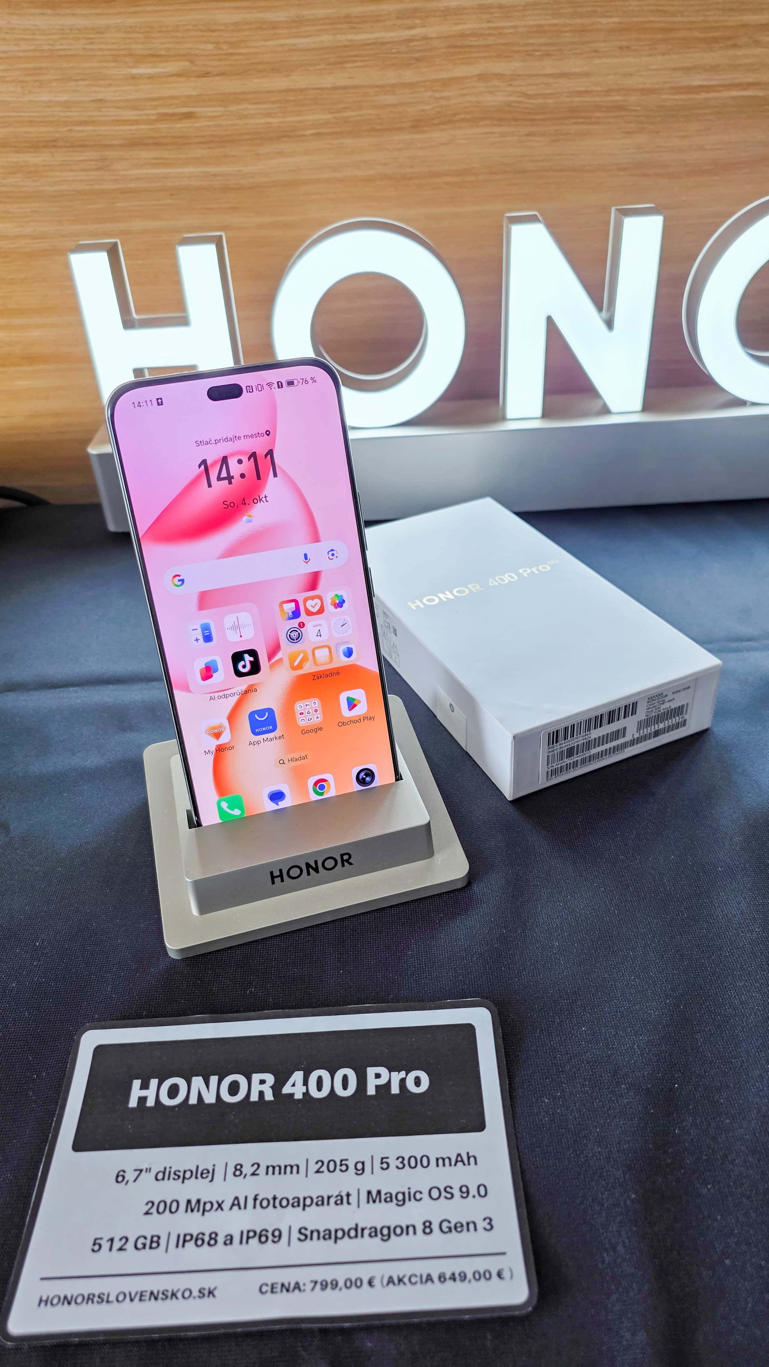 No na výstave Audio Video Kino 2025 sme mali aj ďalší HONOR, tentokrát išlo o model HONOR 400 Pro. Ten naplno bodoval svojim nápaditým modulom s fotoaparátmi či elegantným dizajnom. Nechýbali ani praktické AI funkcie, ktoré si môžete pozrieť aj v našom videu. Práve fotografická výbava a AI funkcie, ktoré sme vám radi predviedli, boli to, na čo ste sa pýtali najviac.