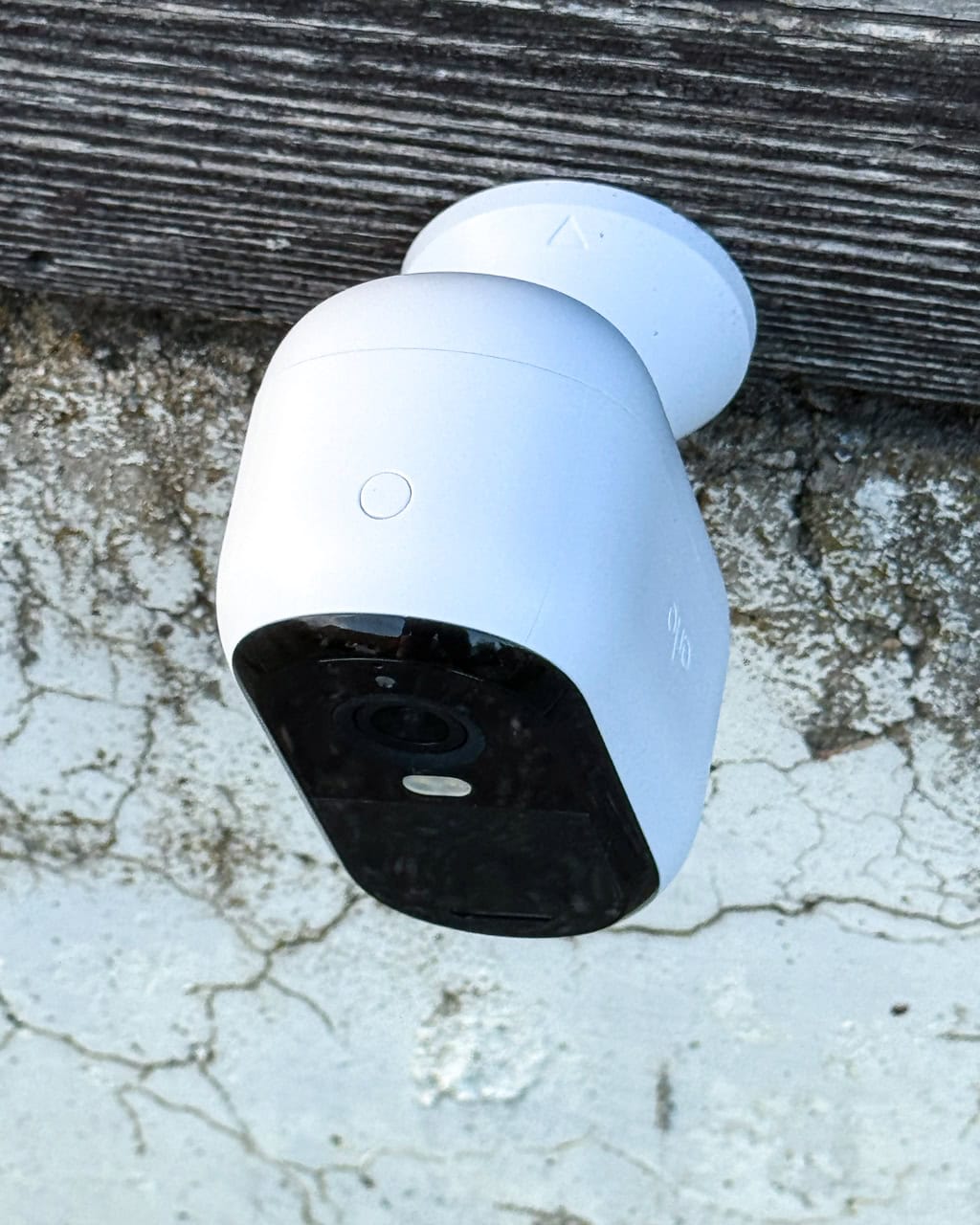 V balení sa nachádza dvojica kamier, čo je minimum na základné zabezpečenie objektu. Dizajn nesie rukopis značky, má oblé biele polykarbonátové telo s čiernou prednou stranou, kde sa nachádza objektív, senzory a prisvetľovacie diódy. Na spodnej strane je USB-C port, ktorým si nabijete zariadenie. Na zadnej strane sa nachádza závit, ten umožňuje pripojenie kamery do držiaka. V hornej časti je tlačidlo slúžiace pre spárovanie. Chýba tu slot na na microSD kartu. Kamera má pevné puzdro s hmotnosťou (203 g).