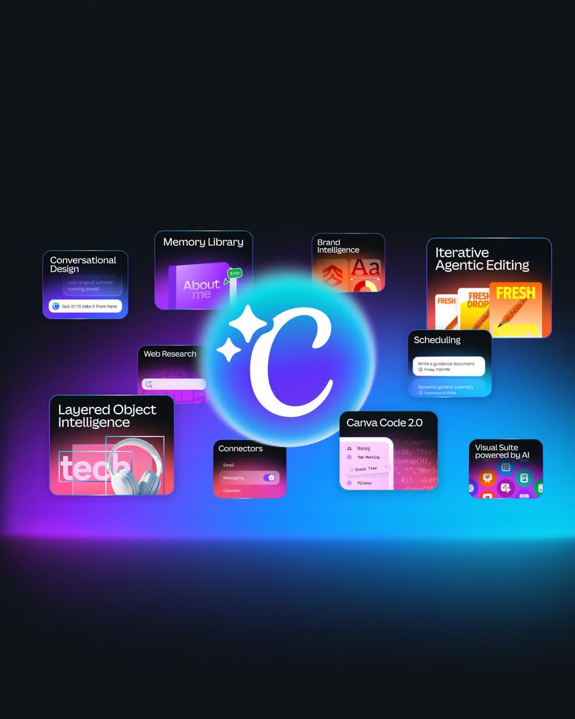 Canva zároveň zavádza koncept „living memory“. Systém si pamätá štýl používateľa, jeho predchádzajúce projekty či preferencie a postupne tomu prispôsobuje výstupy. Táto pamäť môže zahŕňať aj firemné identity, takže návrhy zostávajú konzistentné bez potreby manuálneho nastavovania značky pri každom projekte. Výsledkom je skrátenie času potrebného na opakované úlohy, napríklad pri tvorbe marketingových materiálov.