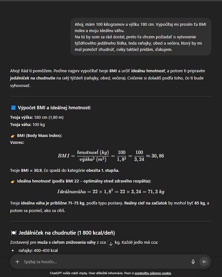 Chcete schudnúť? AI vám vypočíta BMI aj pripraví kompletný jedálniček!