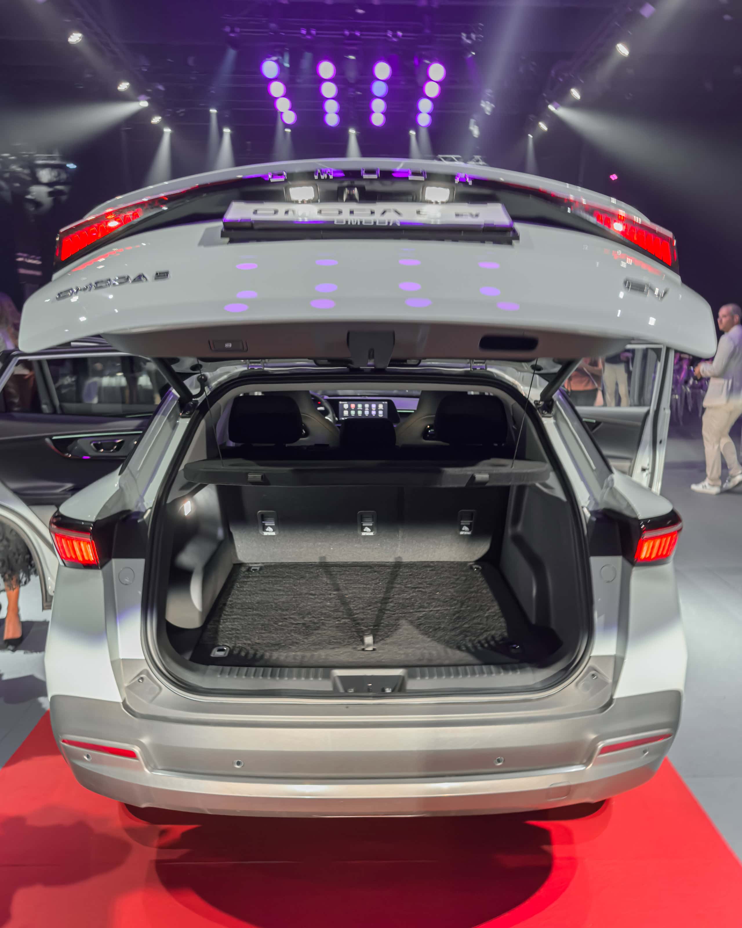 Nás ale viac zaujímav plne elektrická verzia Omoda 5 EV. S rozmermi 4 424 x 1 830 x 1 588 mm a rázvorom kolies 2 630 mm patrí medzi stredne veľké SUV. Pokiaľ ide o batožinový priestor, Omoda 5 EV ponúka základný objem 380 litrov. Po sklopení zadných sedadiel sa tento priestor zväčší na 1 075 litrov. Pod podlahou sa nachádza aj praktická priehradka na uloženie nabíjacej kabeláže. Štandardom pre obe úrovne výbavy sú 18-palcové hliníkové disky kolies.