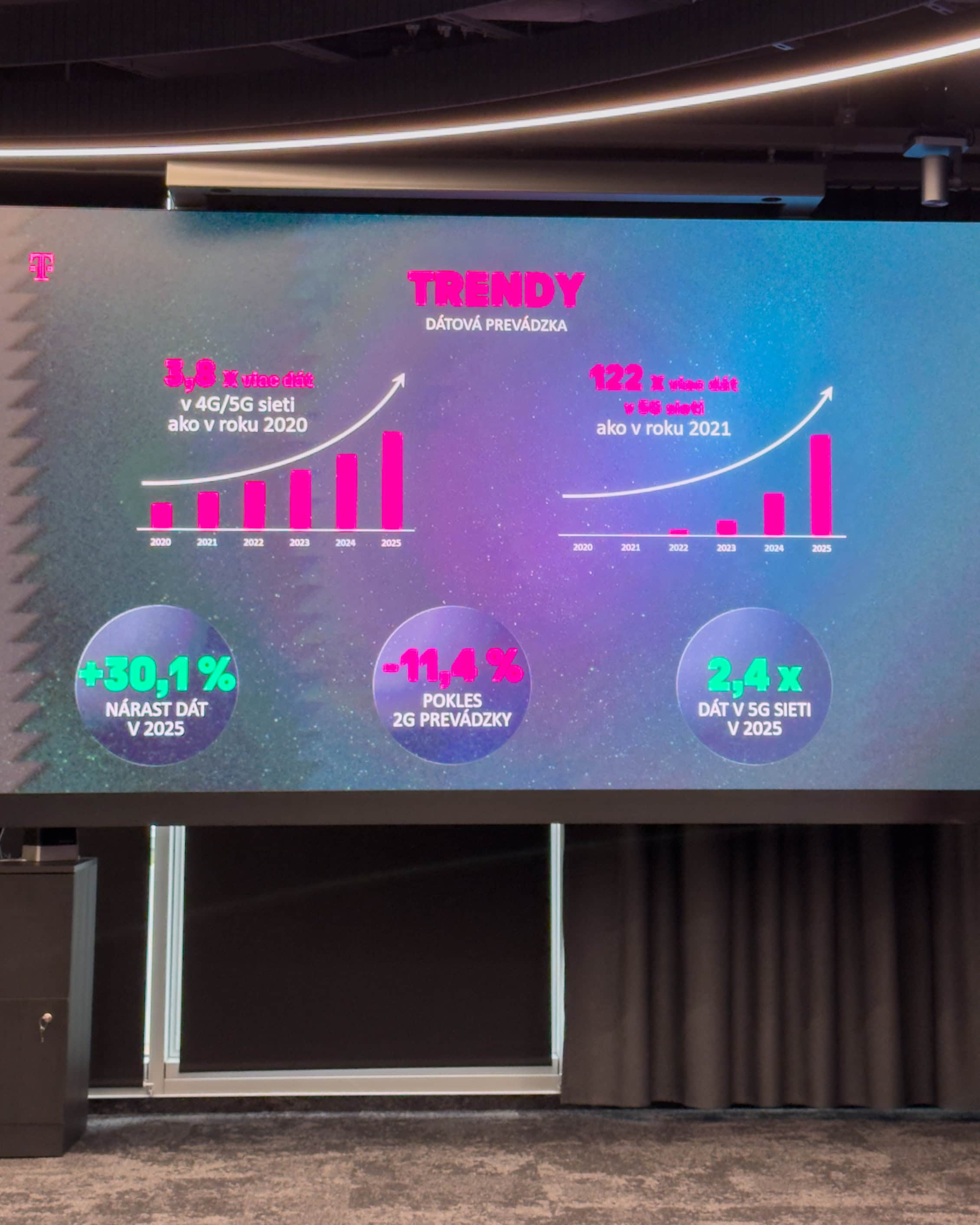 Tieto investície sa pretavili do najrozsiahlejšej modernizácie siete v histórii firmy. Operátor nielen vymieňal antény, ale najmä masívne pripájal základňové stanice na optickú infraštruktúru, čo je nevyhnutný predpoklad pre vysoké kapacity 5G sietí. Modernizácia mala aj ekologický rozmer. Vďaka nasadeniu novších a energeticky efektívnejších technológií dokázal Telekom znížiť spotrebu elektrickej energie o 1,4 %, a to aj napriek tomu, že objem prenesených dát v sieti medziročne narástol o viac ako 30 %.