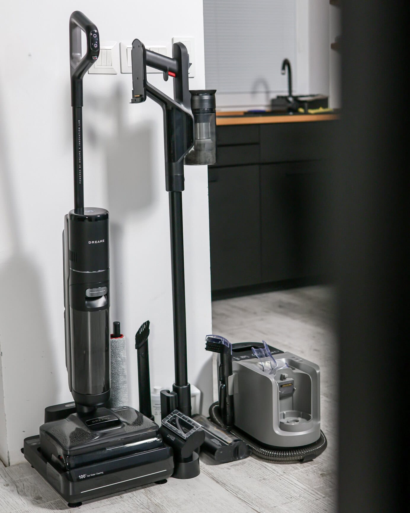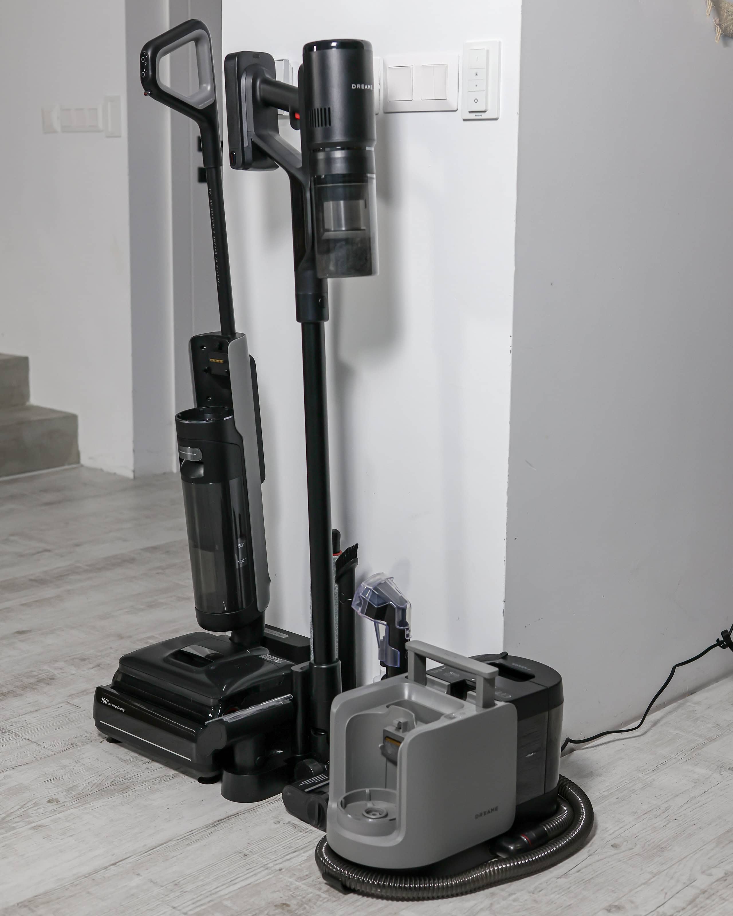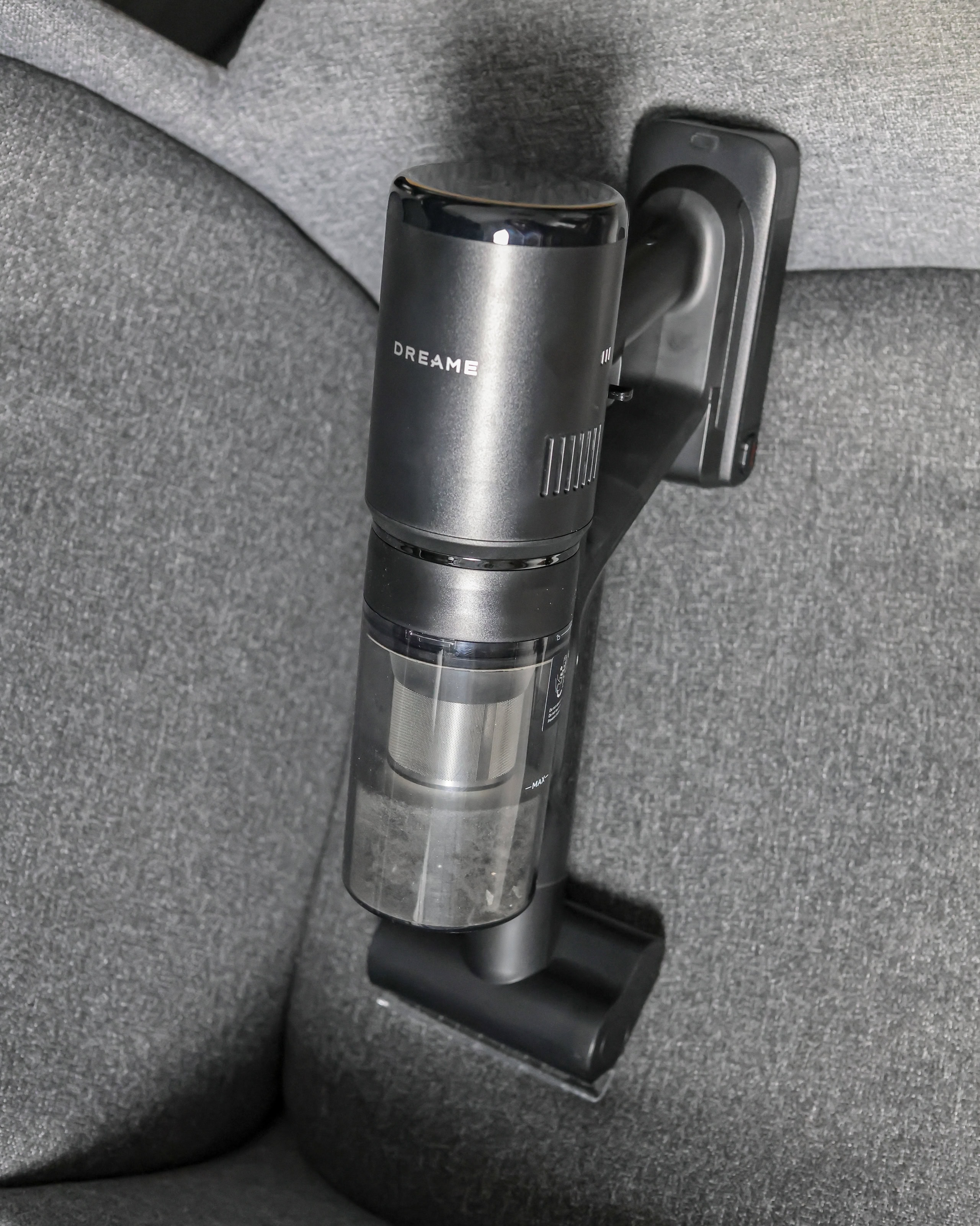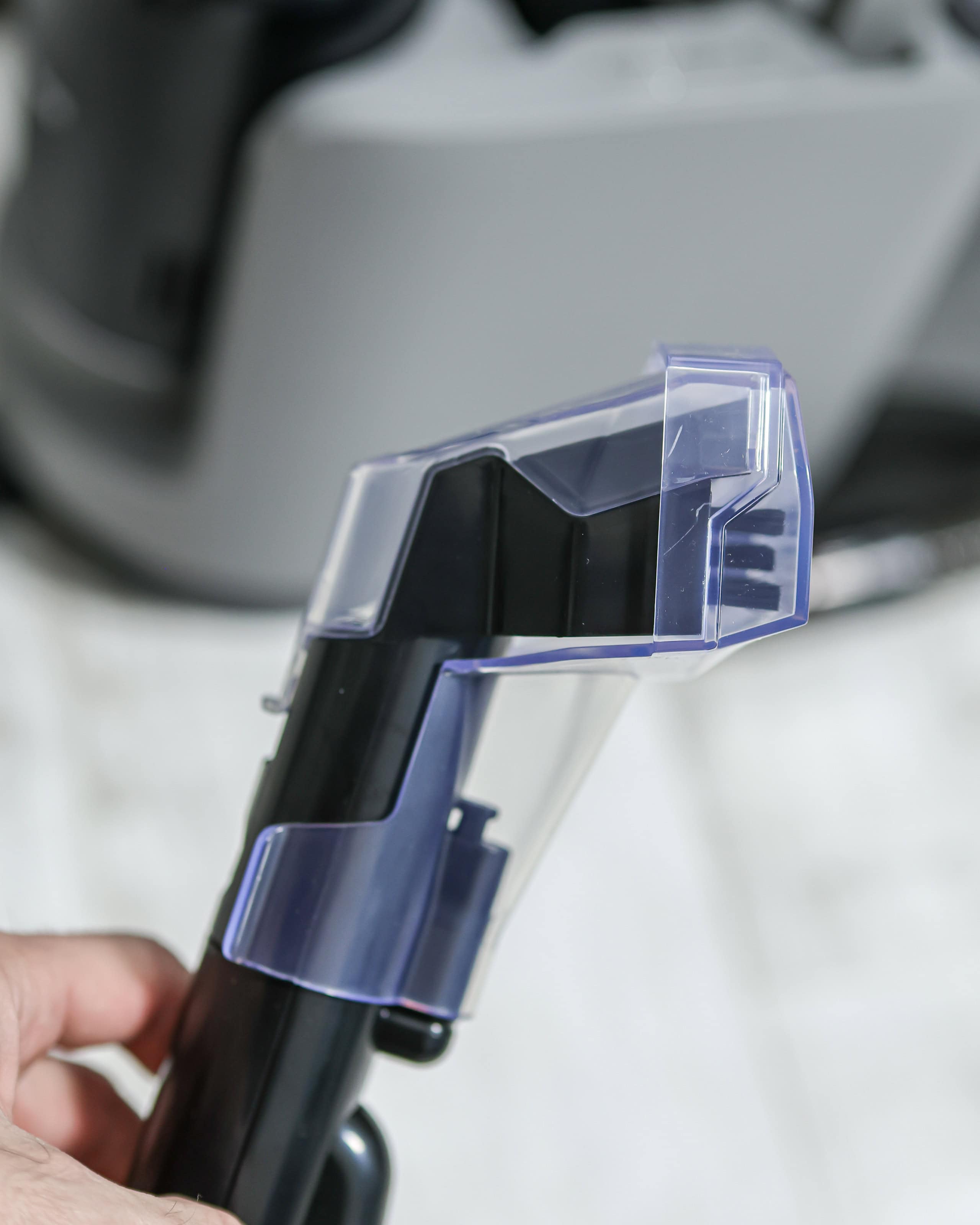 Treťou súčasťou tohto mixu od Dreame je plnohodnotný lokálny čistič škvŕn, ktorý funguje na rovnakom batériovom a motorovom princípe. Stačí prehodiť motorovú jednotku a máte prenosný tepovač, ideálny na čistenie pohoviek, kresiel alebo interiéru auta. V balení nájdete čistiaci roztok, ale použiť môžete akýkoľvek nepenivý prostriedok určený pre strojové čistenie.