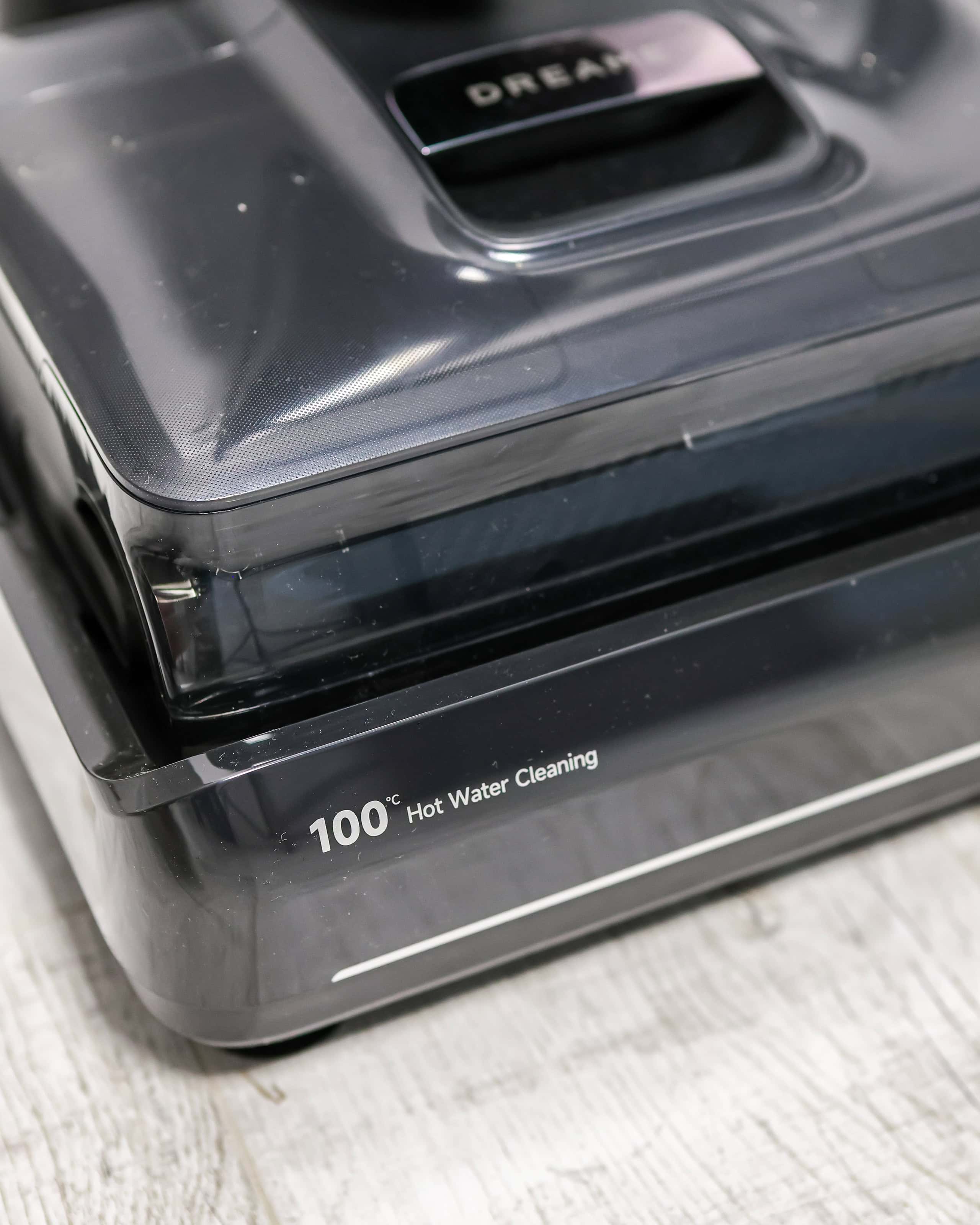 Konštrukcia totiž umožňuje vysávač úplne položiť na zem do vodorovnej polohy (180°), vďaka čomu sa dostane pod nábytok s výškou nožičiek len 14 cm, pričom samotná hlavica vojde aj pod 10 cm medzery. Dreame vyriešilo problém s prelievaním špinavej vody v motore, takže aj v tejto polohe vysávač pracuje na plný výkon bez straty sacej sily.