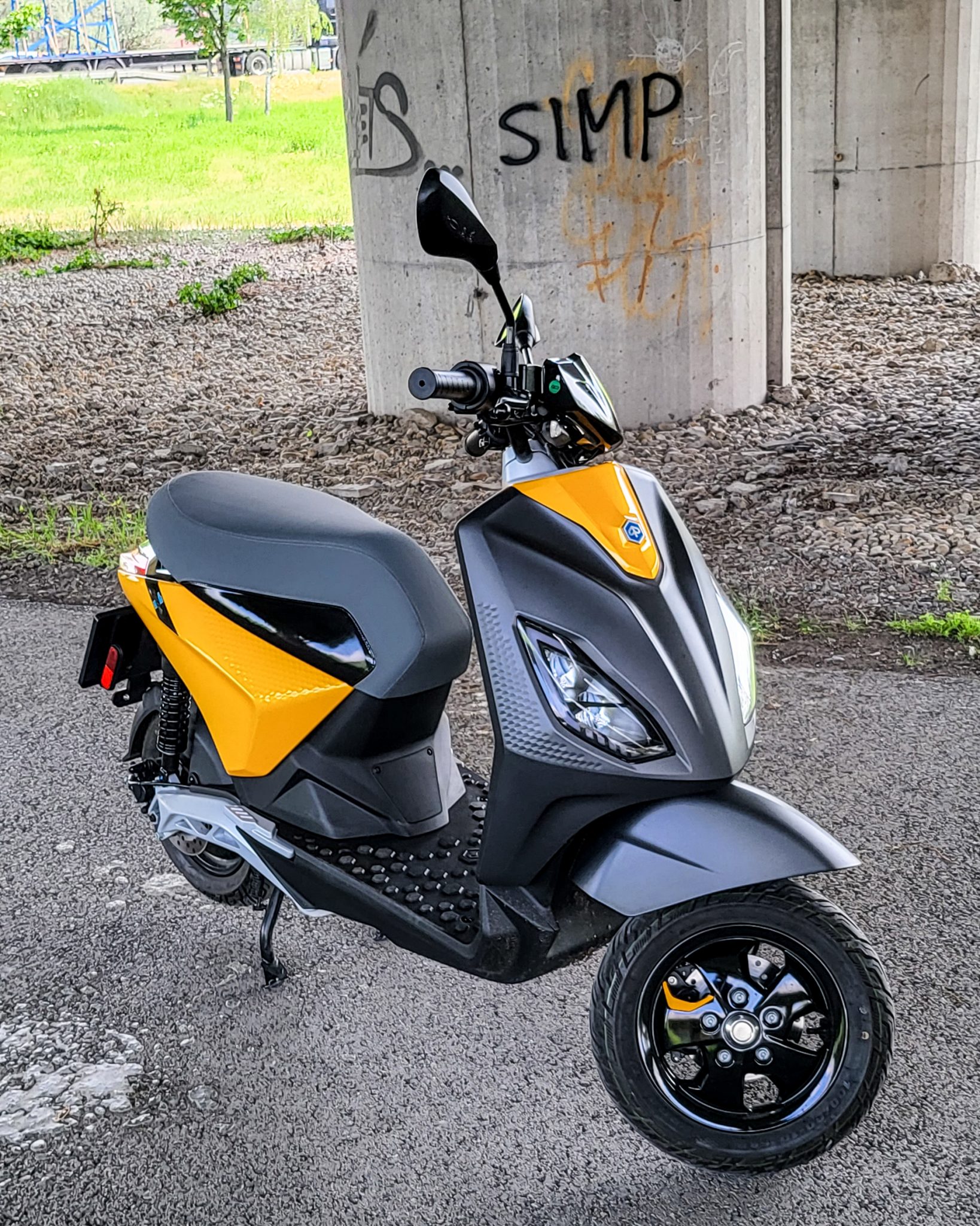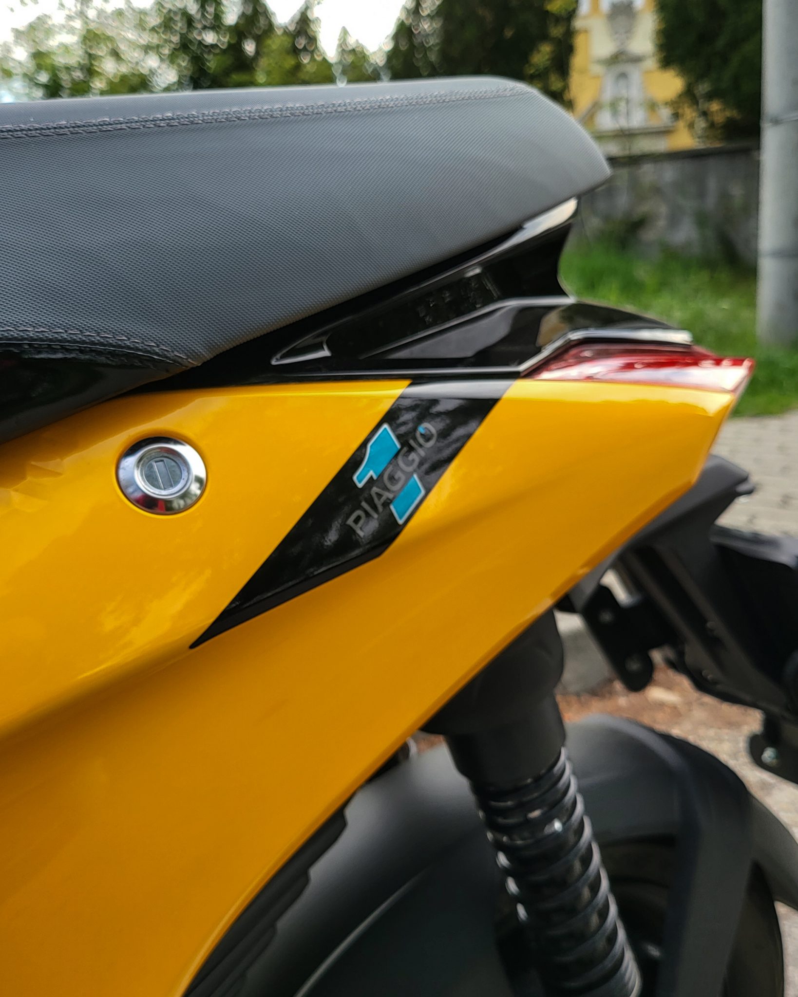 Čo treba uznať, tak Piaggio 1 je pekná štýlovka. V nami testovanej žltej farbe doslova žiari. Dizajn je moderný a efektne pôsobí zadná náprava v hliníkovom prevedení, rovnako aj pohodlné veľké sivé sedadlo či čierne prvky po celom tele e-skútra. Výhodou je aj nižšia hmotnosť, 94 kg vrátane batérie je výborná hodnota. Takýto e-skúter bude ľahký na manipuláciu pre každého bez rozdielu veku či pohlavia.