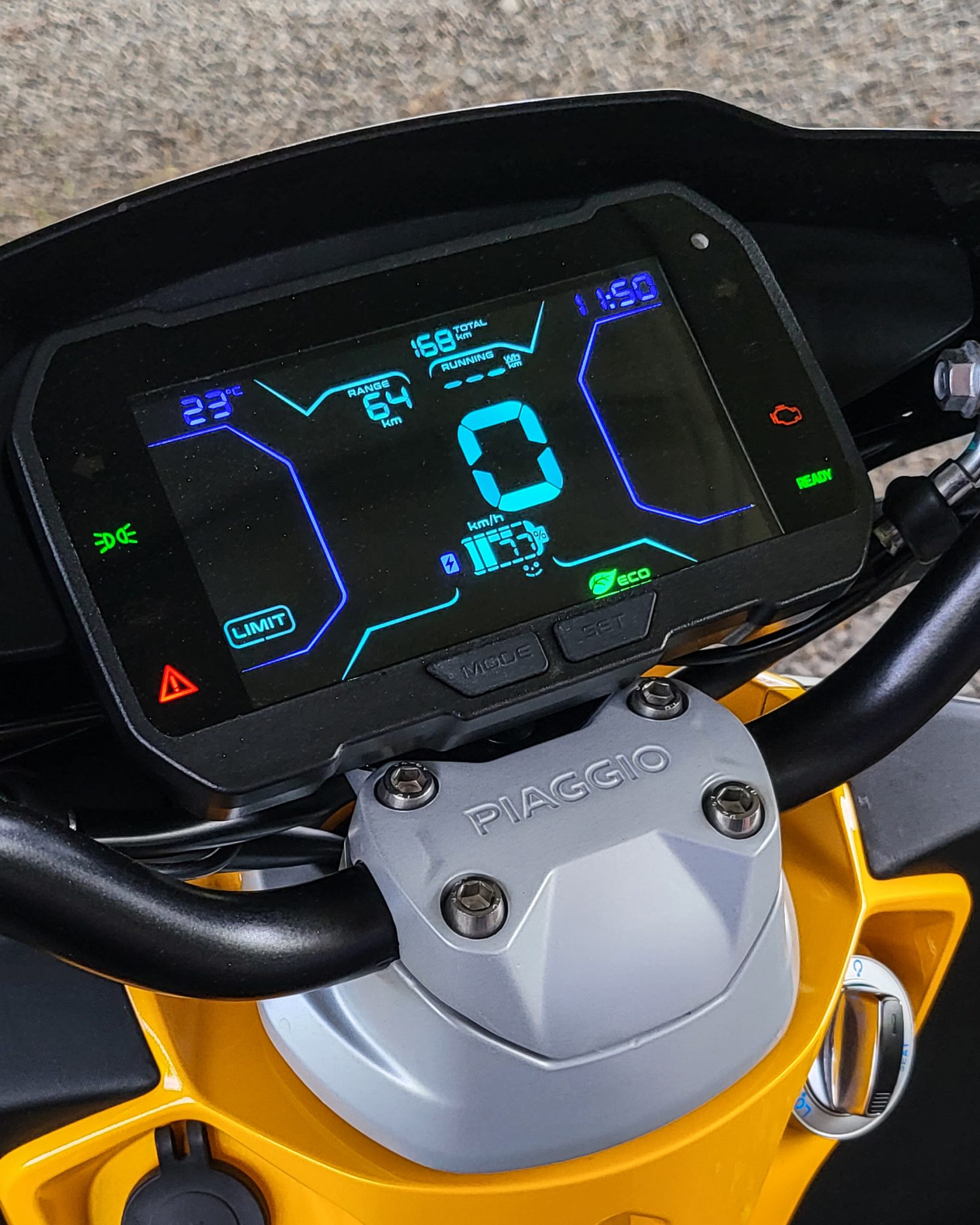 Poďme však na to podstatné, dojazd na batériu. Keď sme si skúter preberali potešil nás údaj na plne digitálnom displeji. 64 km pri 77 % batérii znelo dobre. Ale pozor, ide o hodnotu pre režim ECO. Prečo to je trochu problém? Lebo v ECO režime viete jazdiť s maximálkou len 30 km/h. A to nie je do žiadneho mesta na Slovensku postačujúce, možno tak do talianskych uličiek prímorských mestečiek.