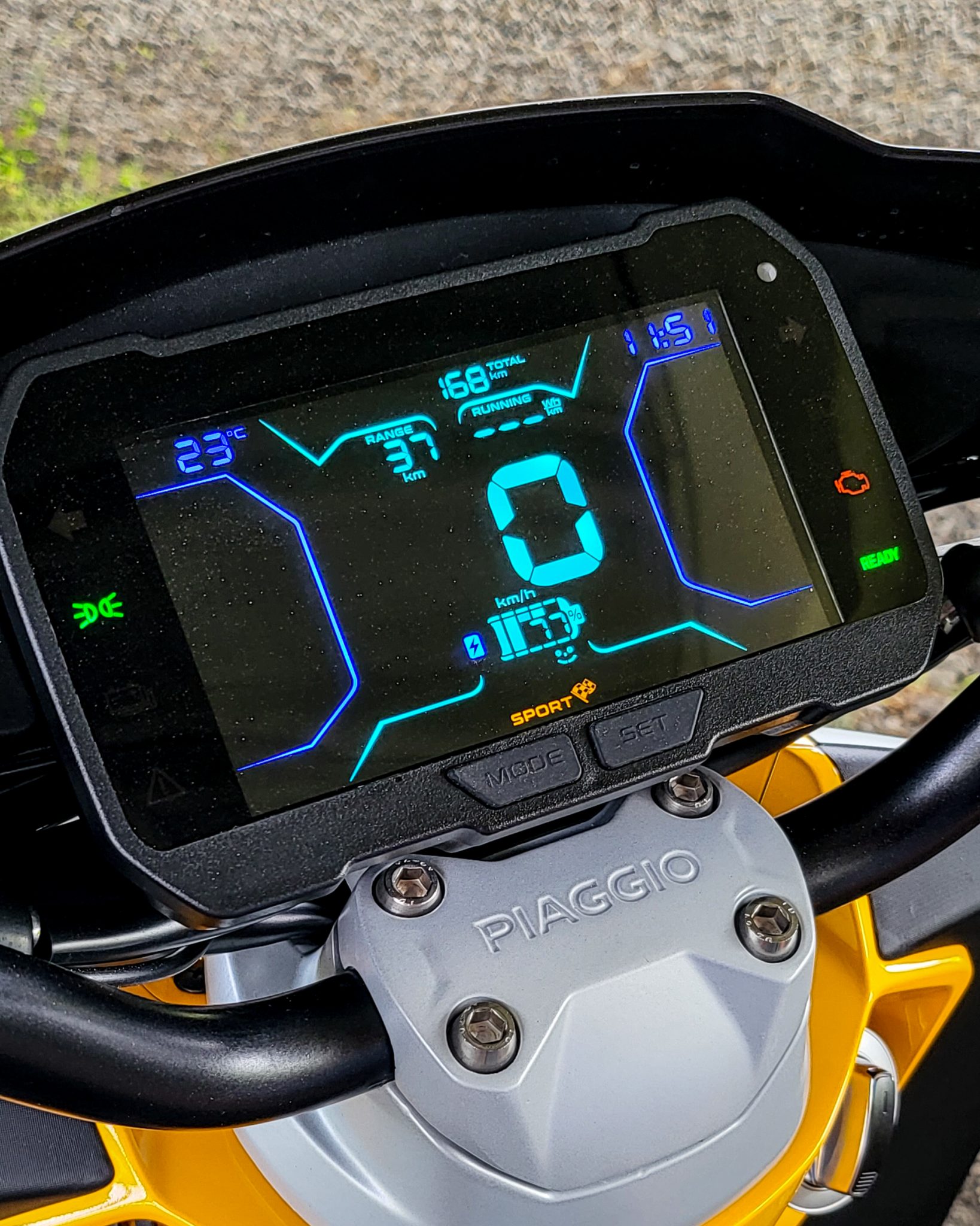 Teraz budeme možno mnohým na posmech, ale jednoducho chýbala nám navigácia. Pozeráme sa na veľký 5,5-palcový LCD displej, kde si nezobrazíte okrem potrebných údajov na jazdu nič. Chce to držiak na telefón, pokiať nepoznáte prostredie kde sa pohybujete.