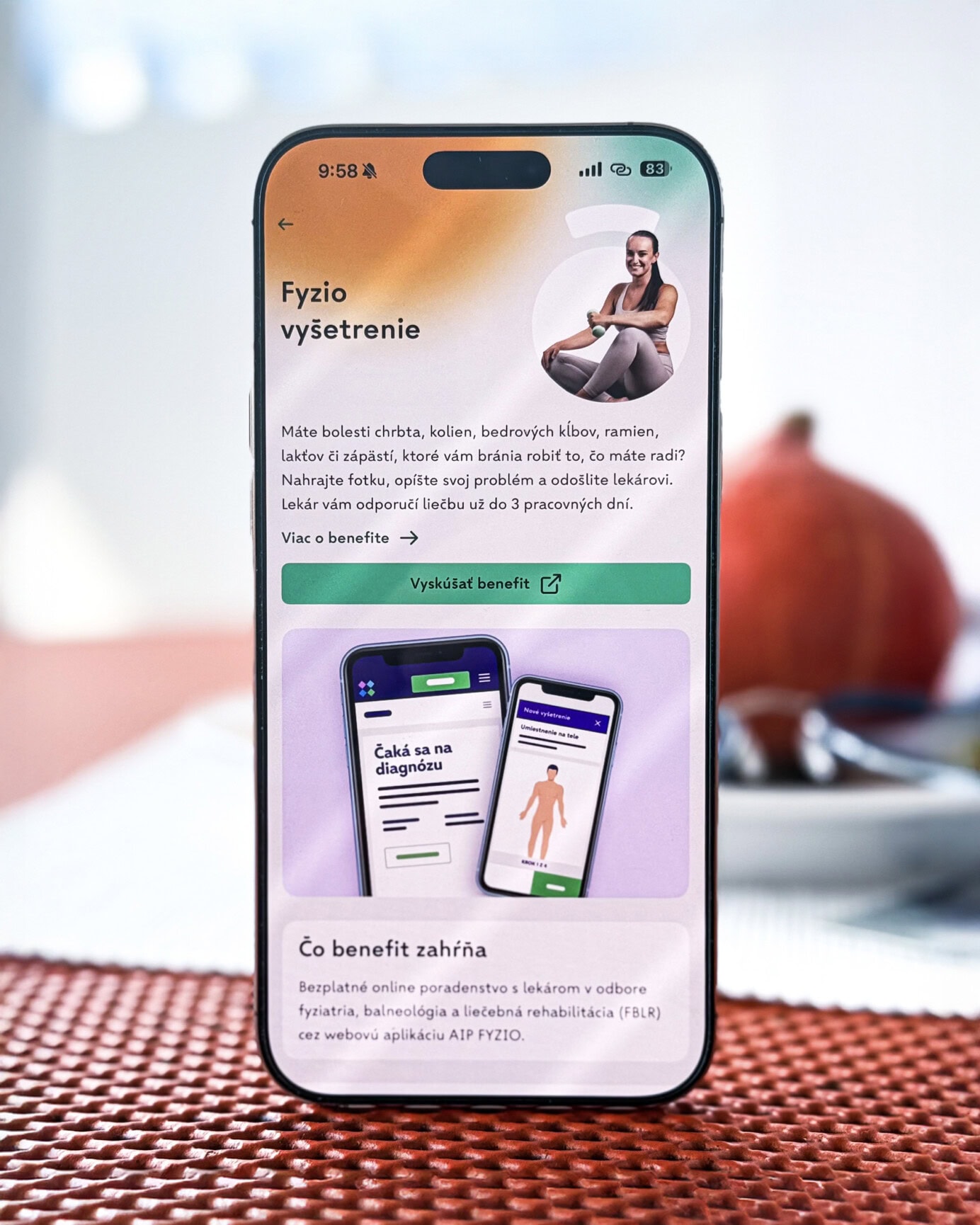 Základom je podmienka, že ste poistencom zdravotnej poisťovne Dôvera. Potom stačí, aby ste si na webstránke poisťovne, alebo priamo v jej šikovnej aplikácii (Google Play, App Store, AppGallery) vyhľadali benefit Fyzio vyšetrenie online. My sme zvolili pohodlnejšiu voľbu, cez appku.