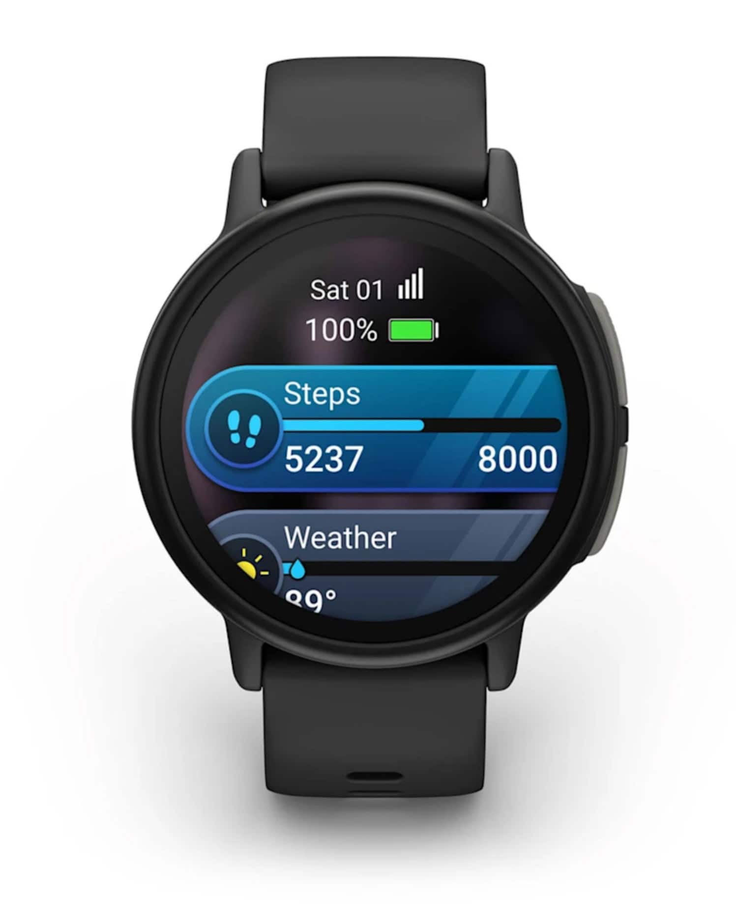 Garmin Bounce 2 vyzerajú výrazne dospelejšie než ich predchodca. Majú kruhové telo s priemerom 43 mm, AMOLED displej s uhlopriečkou 1,2 palca a rozlíšením 390 × 390 pixelov. Telo je ale väčšie (43 x 43 x 12,4 mm, 26,5 g) ako hodinky Garmin vívoactive 6 (42,2 x 42,2 x 10,9 mm, 23 g), ktoré majú identický displej. To treba brať do úvahy, keďže na drobnej detskej ruke hodinky nemusia pôsobiť úplne subtílne.