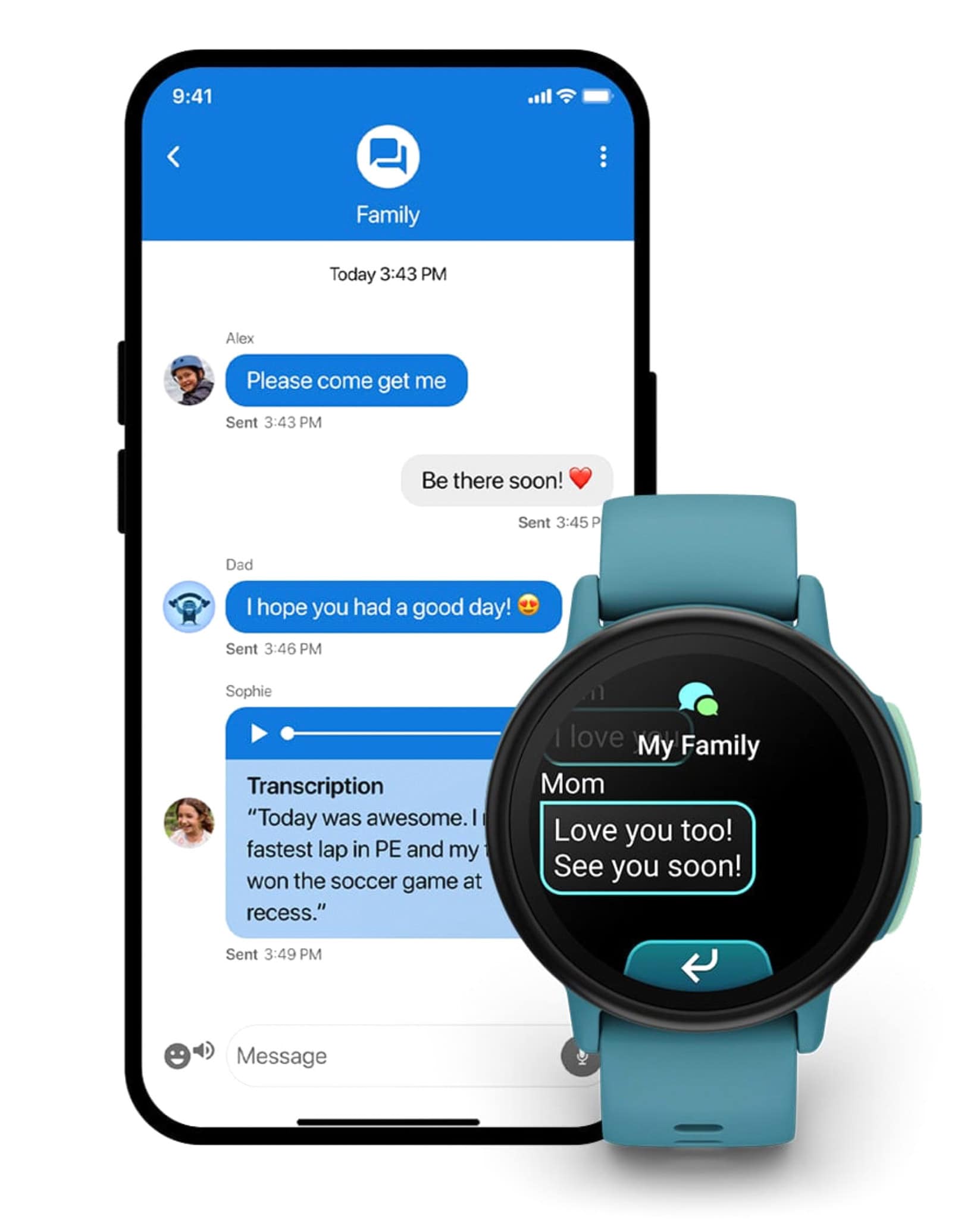 Komunikácia však nekončí pri hovoroch. Deti môžu posielať hlasové správy, ktoré aplikácia Garmin Jr. na smartfóne rodiča dokáže dokonca prepísať do textovej podoby, čo je neoceniteľná funkcia v situáciách, kedy nie je možné správu vypočuť. Navyše, na rozdiel od jednoduchších zariadení, Bounce 2 ponúka možnosť posielania plnohodnotných textových správ. Dieťa nie je odkázané na predvolené odpovede, ale môže písať vlastné správy pomocou klávesnice priamo na displeji hodiniek.