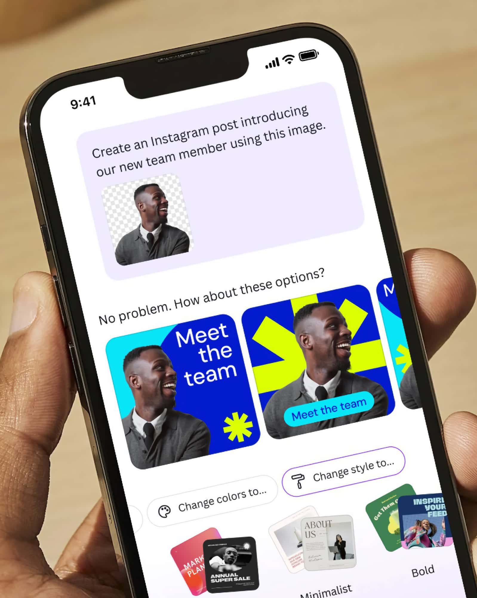 Platforma Canva sa dlhodobo drží na čele medzi nástrojmi na jednoduchú a rýchlu grafiku. V posledných rokoch však nezaostáva ani za trendom umelej inteligencie. Vytvorila vlastné AI rozhranie s názvom Magic Studio, ktoré spája písanie, tvorbu dizajnu, generovanie obrázkov či dokonca jednoduché úpravy fotiek pod jednou strechou. Nemusíte byť dizajnér, aby ste s týmito nástrojmi dokázali vytvoriť čokoľvek od vizitky až po marketingovú kampaň.