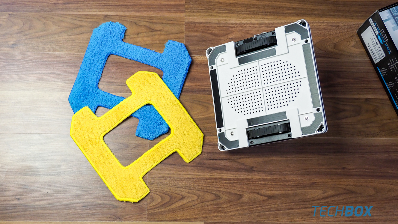 Modrá utierka je len na suché čistenie, teda utieranie prachu z okien, výrobca ju odporúča používať pred vlhkým čistením pomocou žltej utierky. Na sklo pritom máte nastriekať iba trochu čistiaceho prostriedku, inak by sa mohol robot šmýkať.