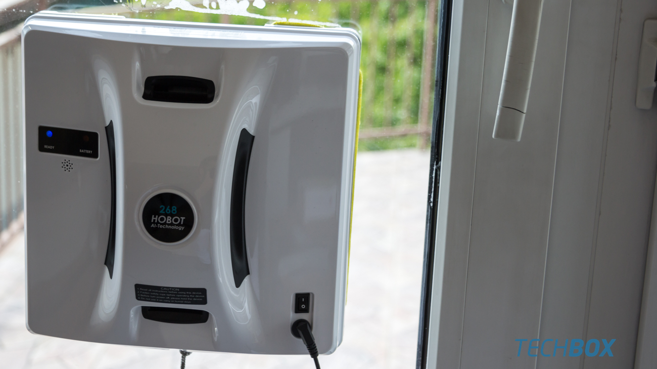 Podľa výrobcu sa totiž HOBOT-268 nesmie používať na mokrých povrchoch, inak by mohol spadnúť, resp. nepracovať správne (zanechávať šmuhy apod.).