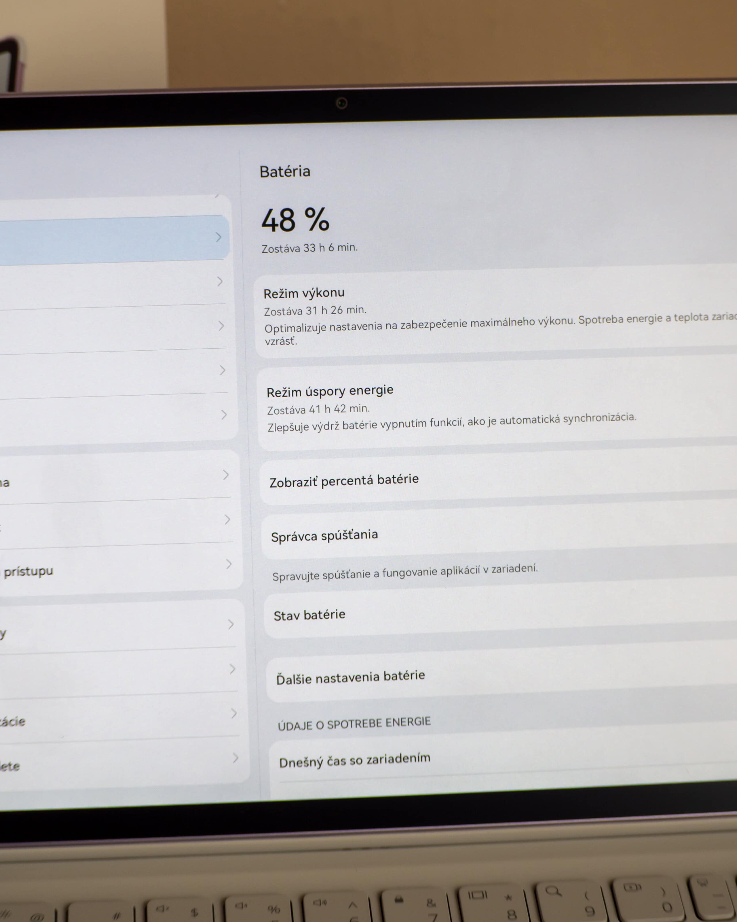 Pod kapotou pracuje vlastný procesor Kirin T82B, ktorému dopomáha 8 GB RAM a 256-gigabajtové úložisko. Pri používaní som nezaznamenal žiaden nedostatok výkonu alebo nejaké trhané animácie. Nejde o žiaden vlajkový procesor, na používanie tabletu to však maximálne postačuje.