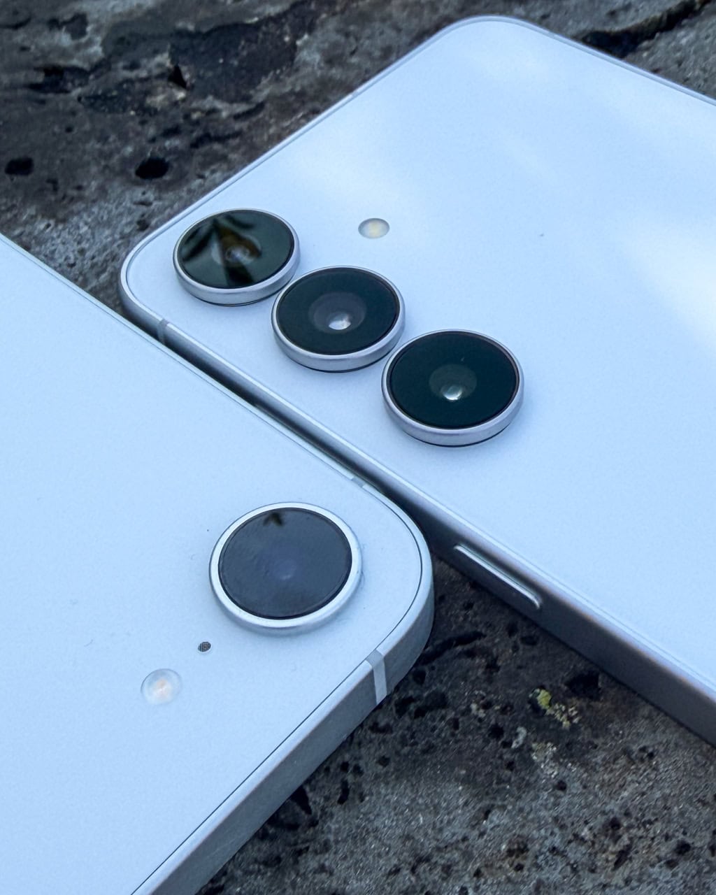 Rozdiely vidíme už na prvý pohľad, pretože iPhone 16e má menší displej a ak si oba smartfóny otočíme, uvidíme rozdiel vo fotoaparátoch. Apple ponúka aj v roku 2025 len jediný objektív, Samsung ich má tri!