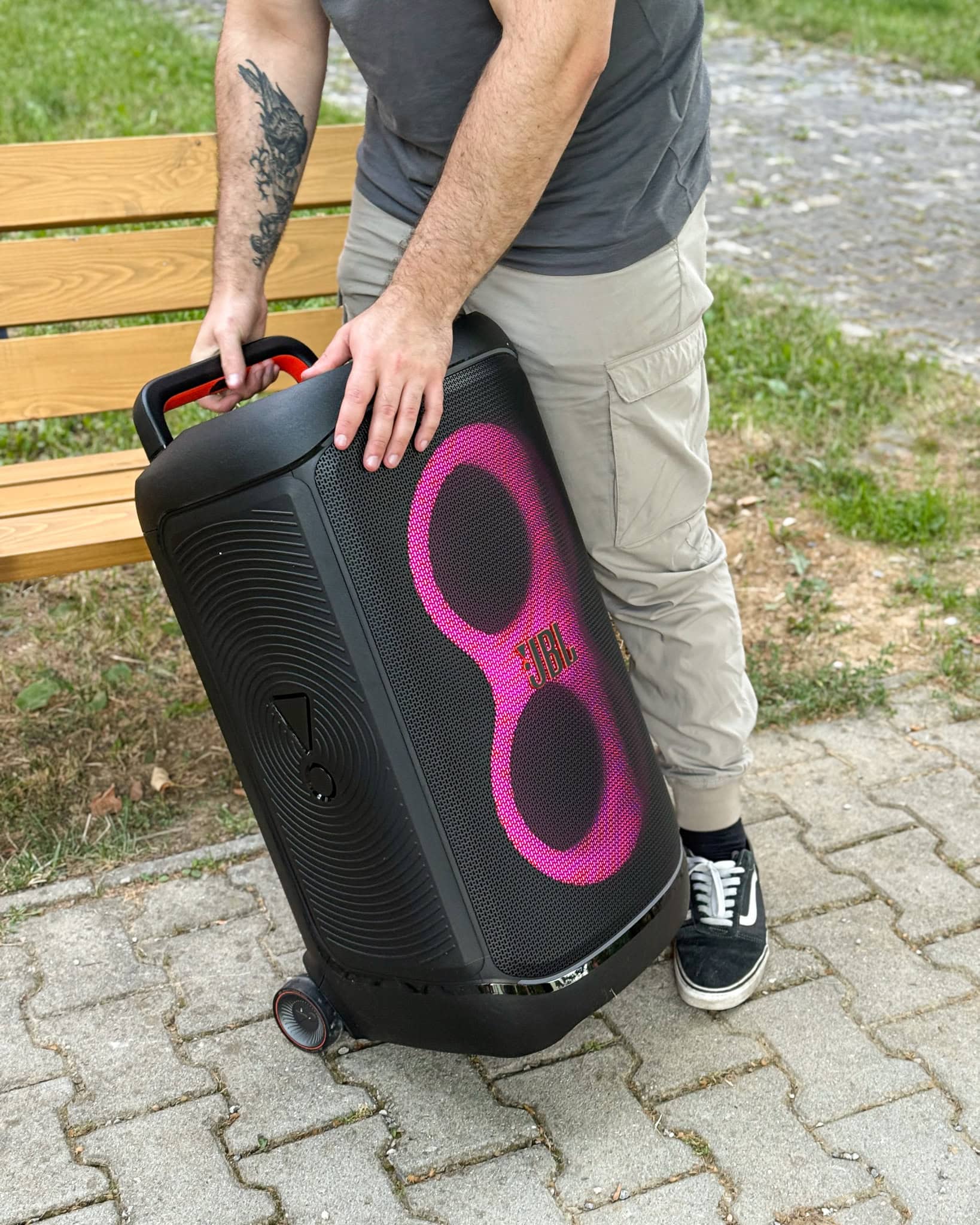 S odolnosťou IPX4 je PartyBox 520 pripravený na akékoľvek podmienky. Jeho jednoduchú prenosnosť zabezpečuje teleskopická tyč, kolieska a po novom aj vymeniteľná batéria s výdržou 15 hodín, vďaka ktorej si tento mohutnejší párty reproduktor môžete vziať kdekoľvek.