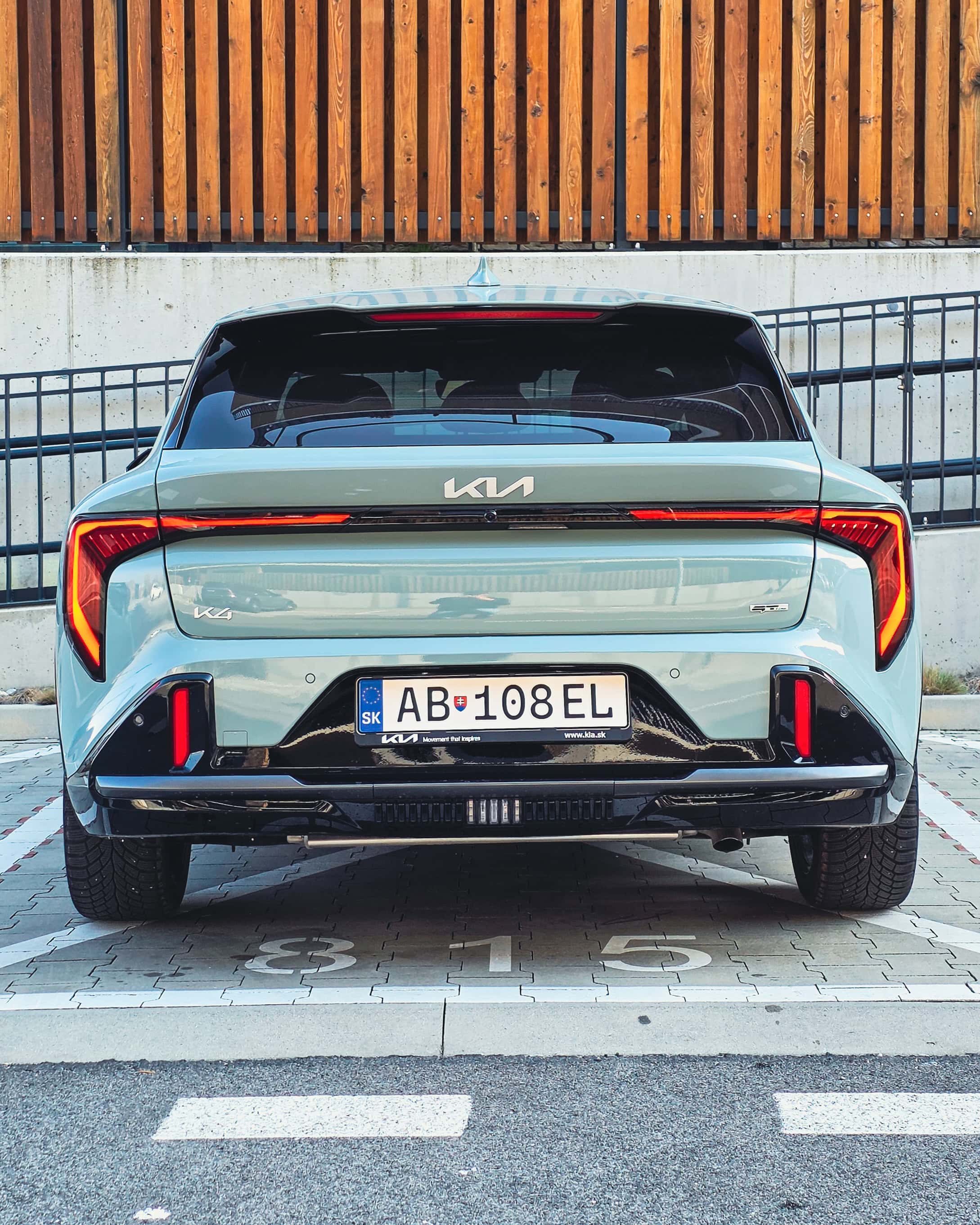Model Kia K4 si s ničím nepomýlite, rozhodne zaujme aj svojou siluetou, kde je zadný C-stĺpik efektne rozdelený klavírnym čiernym lakom a nechýbajú skryté kľučky zadných dverí, ktoré nájdete v časti zadného okna. Zozadu pritom novinka pôsobí veľmi sebavedomo, aj tu sa nedá prehliadnuť výrazný svetelný podpis v tvare obráteného písmena L. Pridajte k tomu výrazný strešný spojler či lakované prvky v spodnej časti zadného nárazníka a máte auto, za ktorým sa vždy obzriete, keď ho kdekoľvek odparkujete.