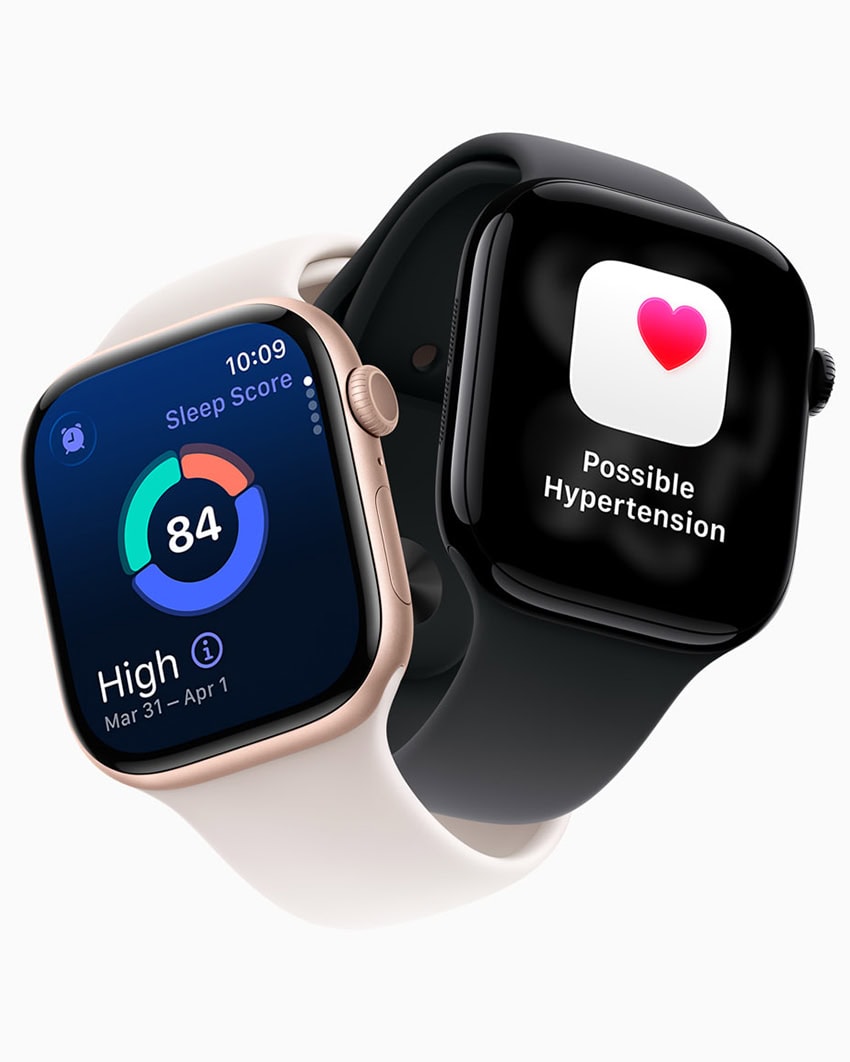 Najzásadnejším zdravotným doplnkom sú upozornenia na hypertenziu. Tieto využívajú optický senzor, ktorý počas 30 dní pasívne analyzuje reakciu krvných ciev na každý tlkot srdca, a v prípade konzistentných odchýlok informuje používateľa. Hypertenzia je totiž často neodhalená, ale jej včasná identifikácia môže zachrániť život. Apple sa nezabudol pochváliť, že nová funkcia dokáže za prvý rok upozorniť vyše milión používateľov s doteraz neidentifikovanou hypertenzioou.
