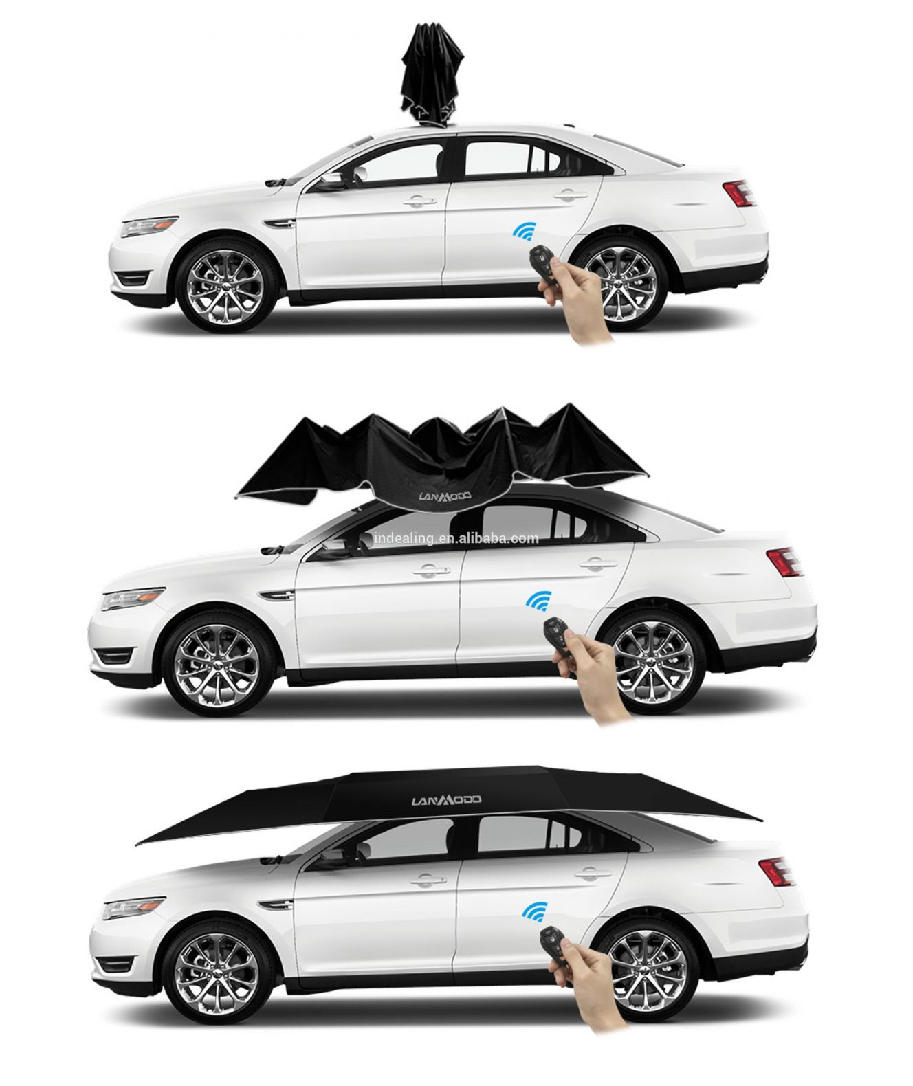 Namiesto hľadania chládku, ktorý býva hlavne pri nákupných centrách problémoch stačí z kufra vytiahnuť Lanmodo. To sa pripevní na strechu auta pomocou klasickej prísavky. Ďalej už len stačí stlačiť tlačidlo na ovládači a slnečník sa sám rozprestrie za približne osem sekúnd. Nepôjde tak o riešenie na cesty, auto bude musieť stáť na mieste. Kapacita batérie by mala postačovať na 500 takýchto rozložení a zložení. Celková životnosť má dosahovať 10 000 cyklov.