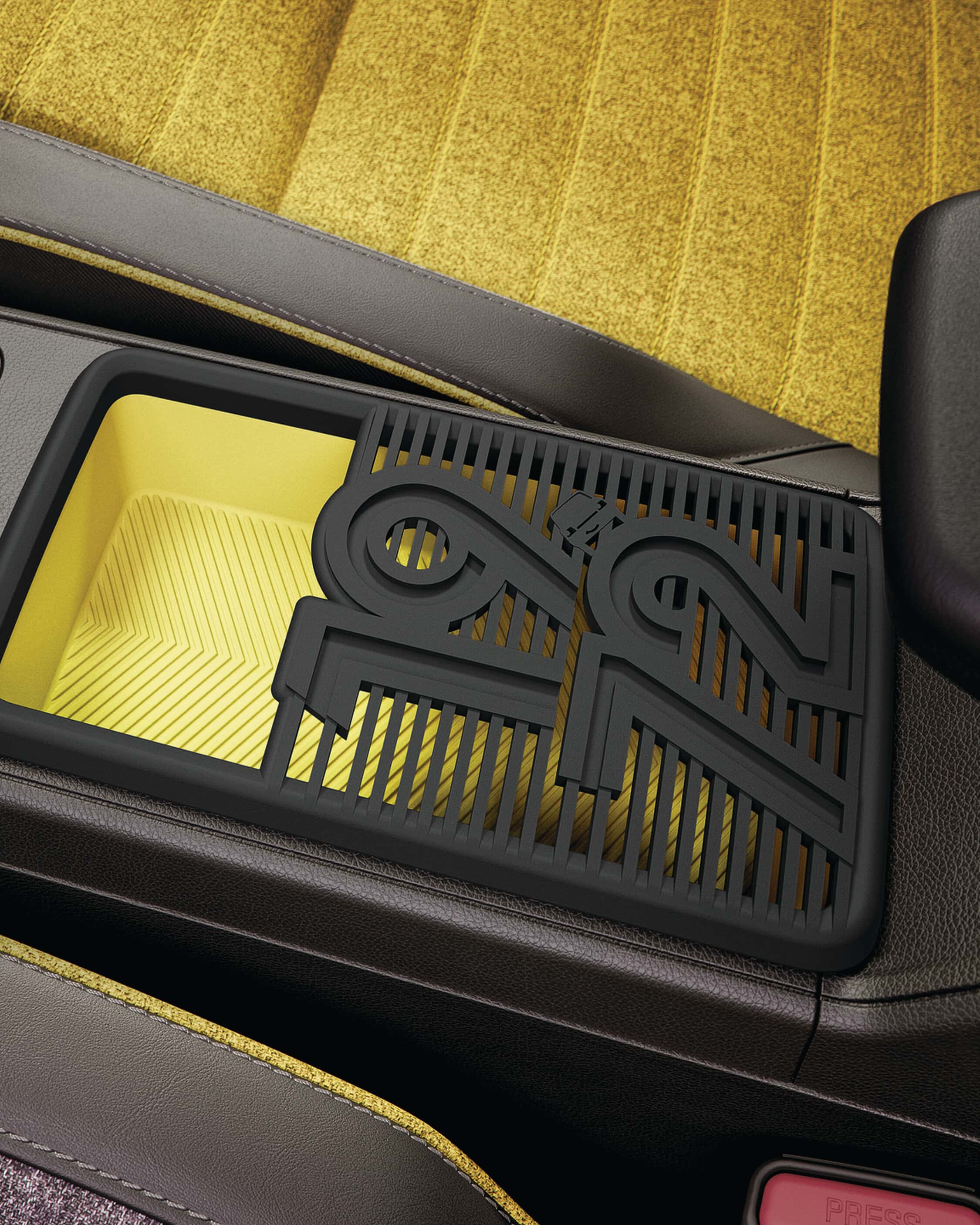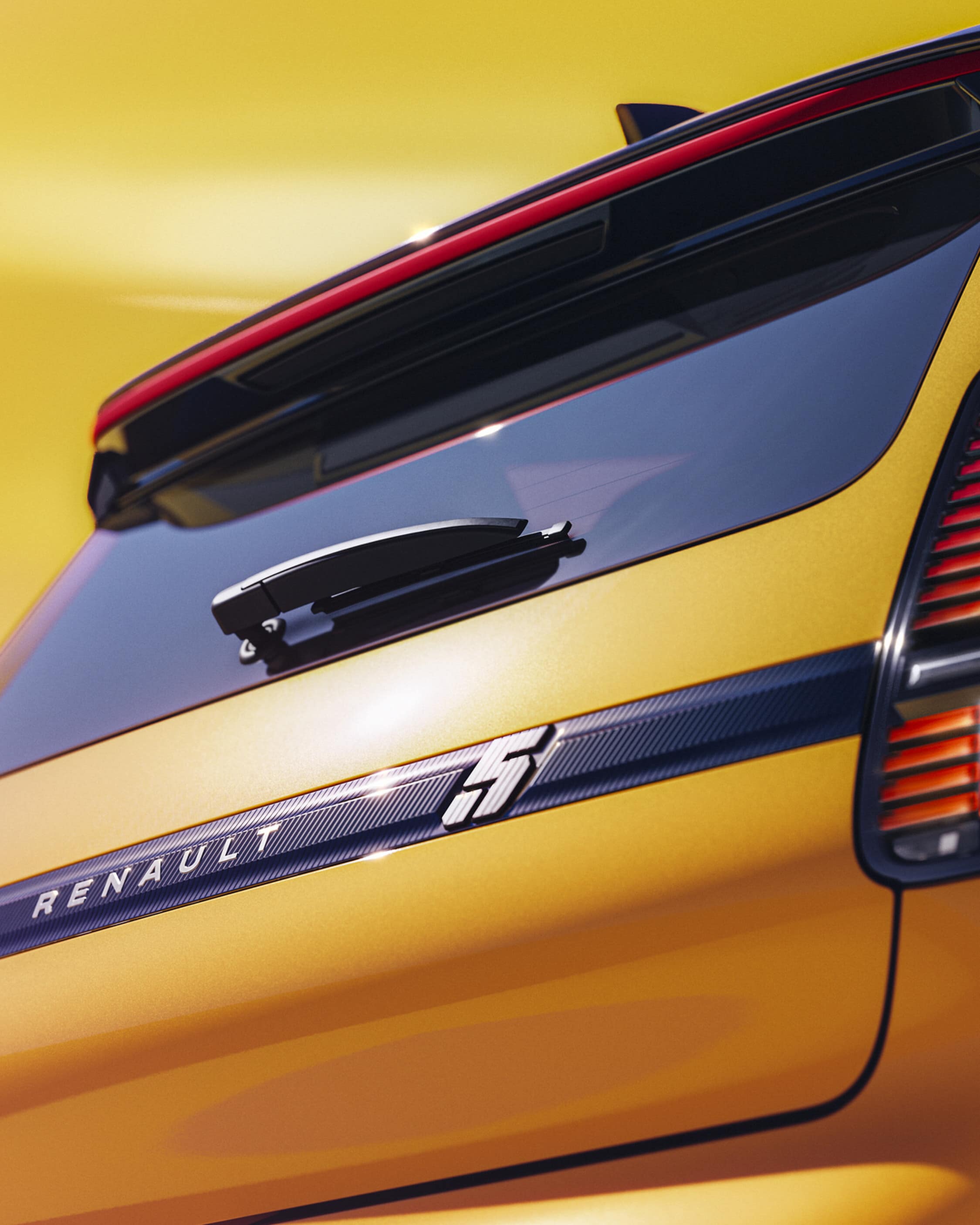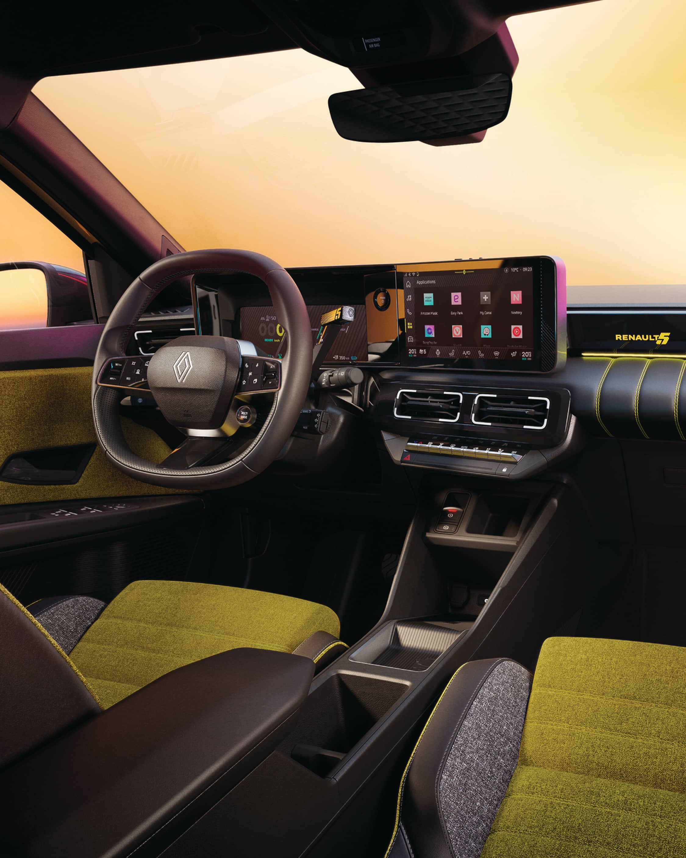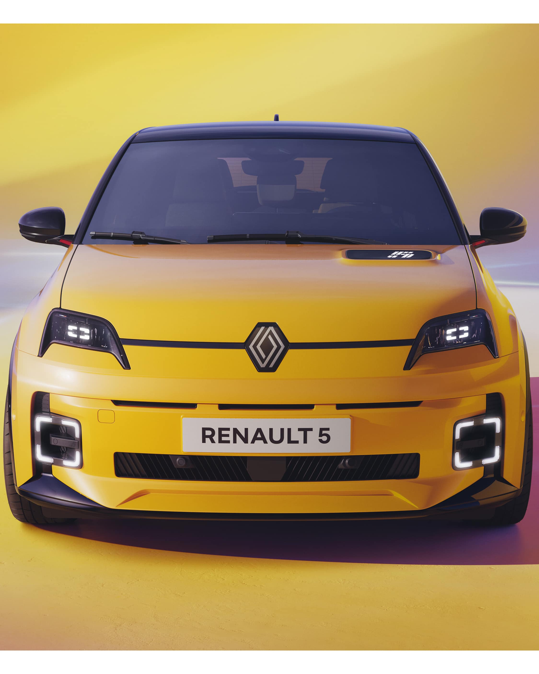 Kým v starej generácii Renault 5 bola na kapote mriežka pre nasávanie vzduchu, v koncepte to malo byť miesto pre nabíjanie. Dnes tam dizajnéri umiestnili indikátor nabitia batérie do číslice 5. 5-ťka je, mimochodom, na mnohých miestach v exteriéri i interiéri.