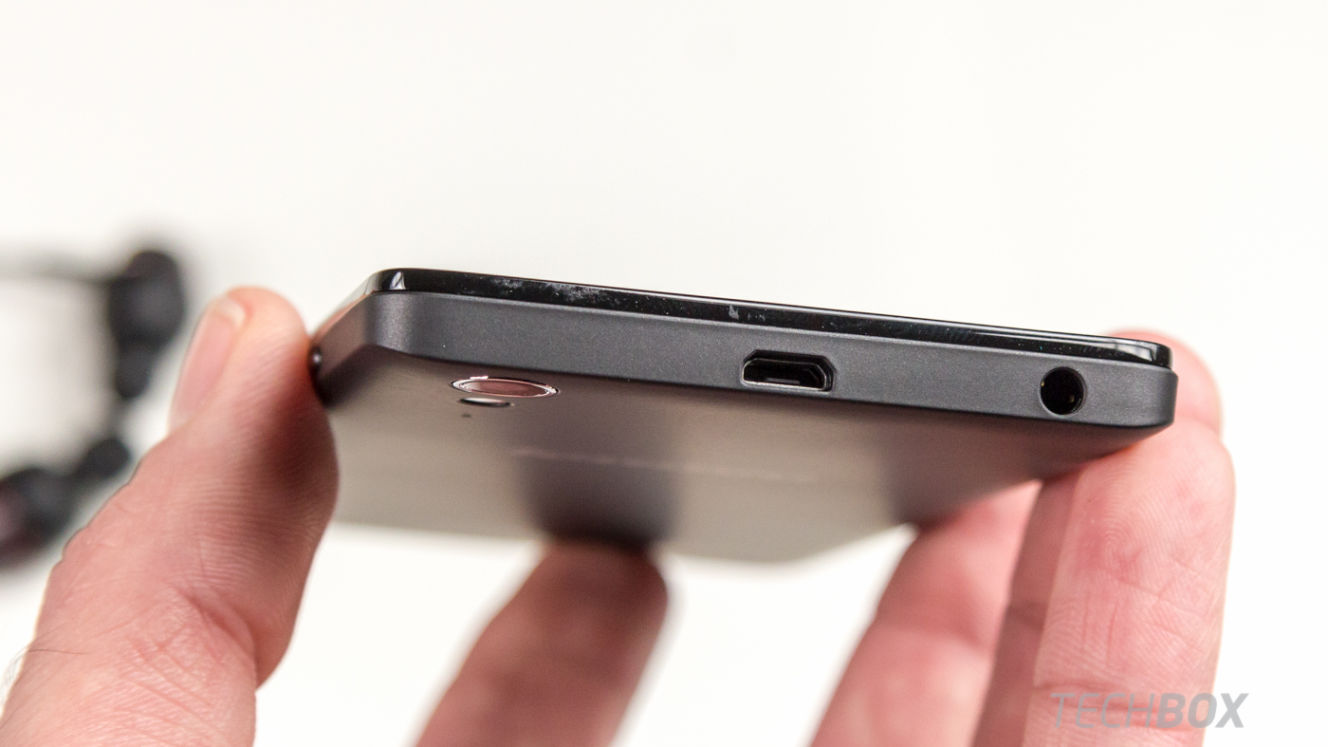 Lenovo chválim za umiestnenie microUSB a 3,5 mm audio konektora vedľa seba na hornú stranu. Pri nabíjaní a súčasnom počúvaní hudby cez slúchadlá aspoň káble netrčia každý z inej strany.