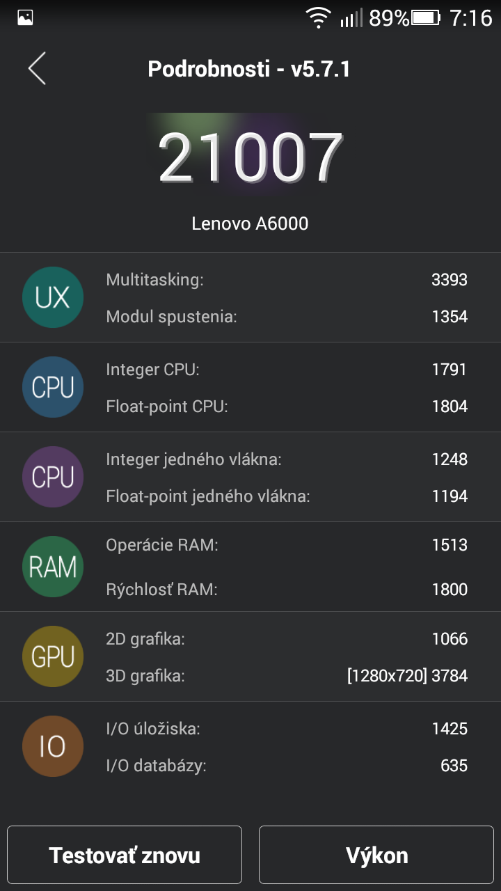 Štvorjadrový procesor Snapdragon 410 podával prijateľný výkon, o čom svedčia aj benchmarky (AnTuTu 21 007, 3DMARK ISU 4 427), vyzdvihnúť musím aj plynulý chod systému, ktorým je Android 4.4.4 doplnený nadstavbou VIBE UI.