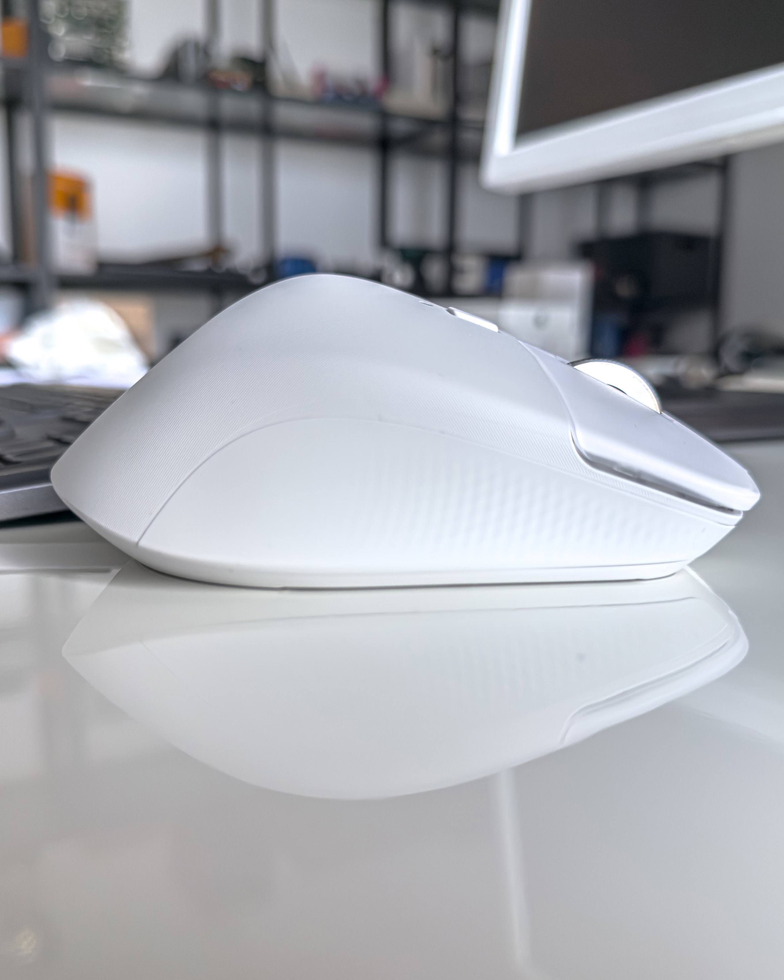 Klikanie tiež zostáva extrémne tiché, s o 90 % nižšou hlučnosťou v porovnaní s modelom MX Master 3, čo je ideálne nielen pre otvorené kancelárie (open offices), ale aj tichý home office. Výdrž batérie je podľa Logitechu až 70 dní na plné nabitie a vďaka rýchlemu nabíjaniu cez USB-C stačí jediná minúta na získanie energie až na 3 hodiny práce. USB-C port je pritom v prednej časti, aby aj počas nabíjania mohol používateľ myš používať.