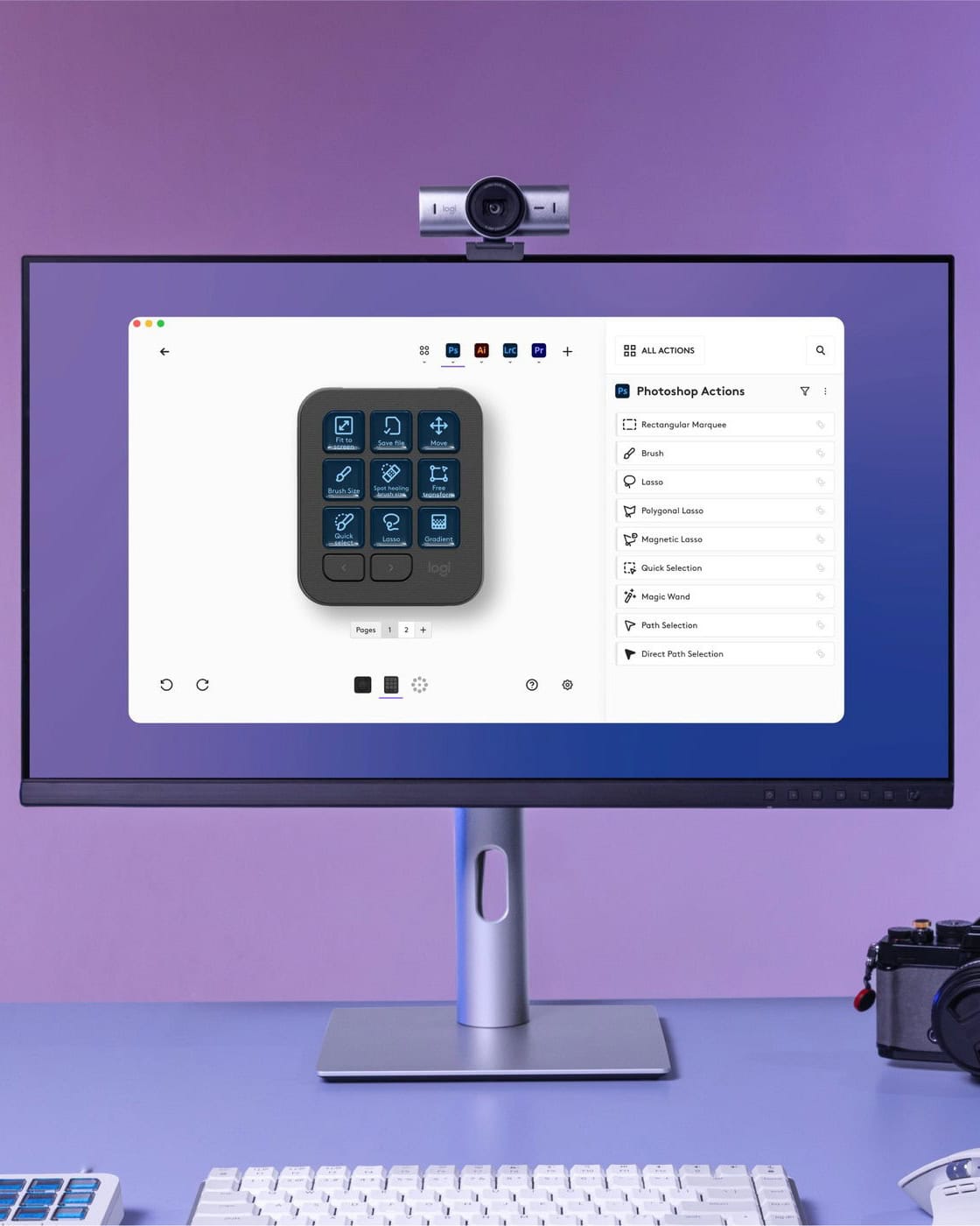 Srdcom celého systému je aplikácia Logi Options+. Tá rozpozná, či ste práve v Adobe Lightroom, vo Figme, alebo len počúvate hudbu na Spotify a okamžite prispôsobí funkcie konzoly podľa aktuálnej aplikácie a zvoleného nástroja.