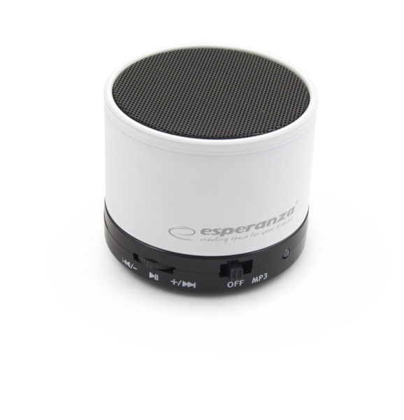 Štýlový prenosný reproduktor Esperanza EP115W umožňuje prehrávanie hudby prostredníctvom bezdrôtovej technológie Bluetooth s dosahom do 10 metrov. Reproduktor disponuje slotom na micro SD kartu. Nechýba možnosť regulácie hlasitosti a AUX vstup.