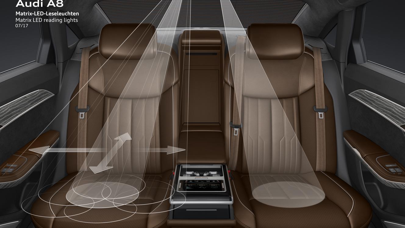 Budíky dostali tiež nový dizajn i displej. Ten má mať rozlíšenie 1 920 x 720 px. Okrem iného bude možné A8-čku vybaviť aj masážou nôh pre pasažiera na pravom zadnom sedadle, chýbať ale nebudú masážne sedačky pre všetkých.