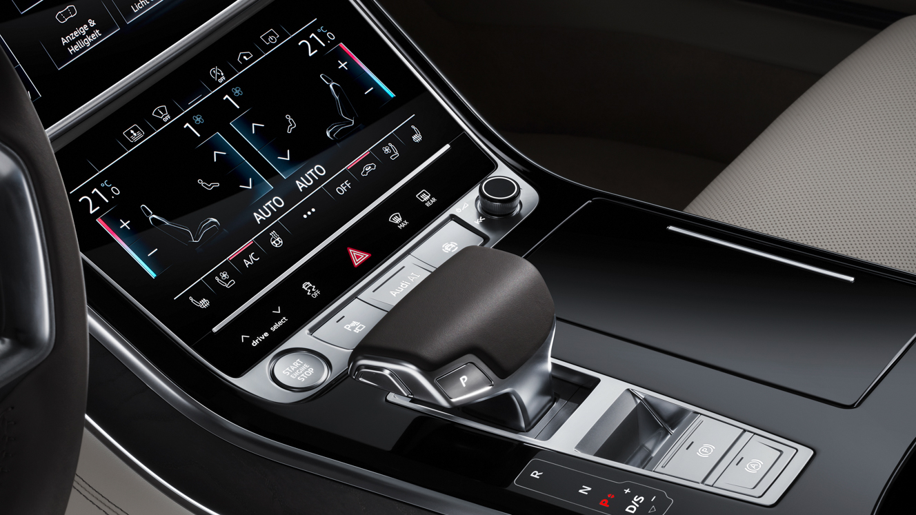 Pod hlavným displejom je druhý dotykový displej na ovládanie základných funkciií vozidla. Vďaka dvojici displejov Audi mohlo zrušiť veľké množstvo tlačidiel a tak vyčistiť stredový panel. Už na prvý pohľad pôsobí úplne novo, elegantne a moderne zároveň.