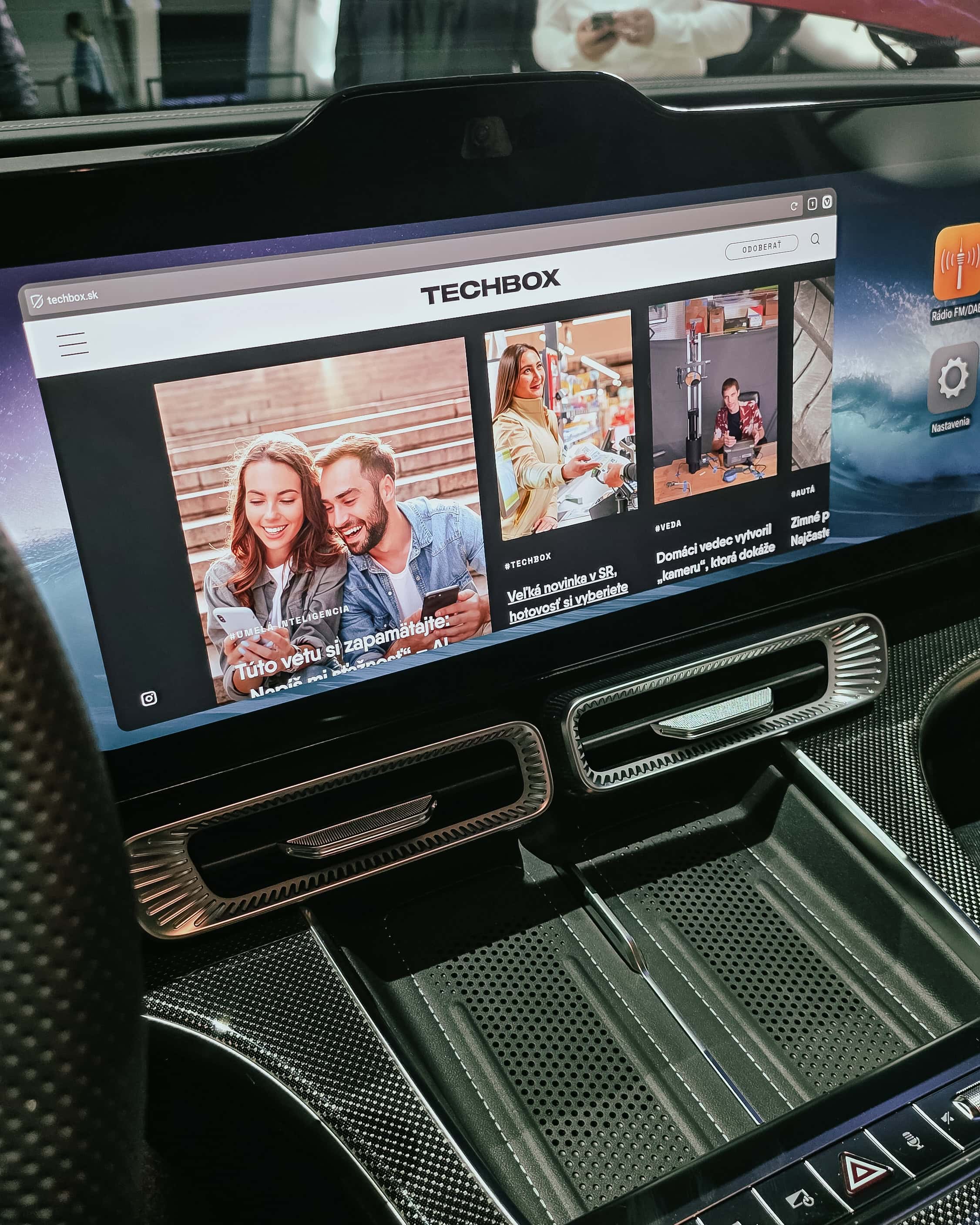 Rozlíšenie displeja a odozvy na dotyk sú absolútnou špičkou. Vynikajúcu ostrosť a vysoké rozlíšenie zabezpečuje aj inovatívna technológia matricového podsvietenia s viac ako 1 000 jednotlivými svetelnými diódami. Táto Hyperobrazovka MBUX sa v podstate skladá z troch častí, aj keď ide o displej vcelku. Časť displeja pred vodičom nie je dotyková. Zvyšok je rozdelený do dvoch zón s dotykom. Viete si tu kľudne pozrieť web stránky, aj náš TECHBOX vám v pohode pôjde.