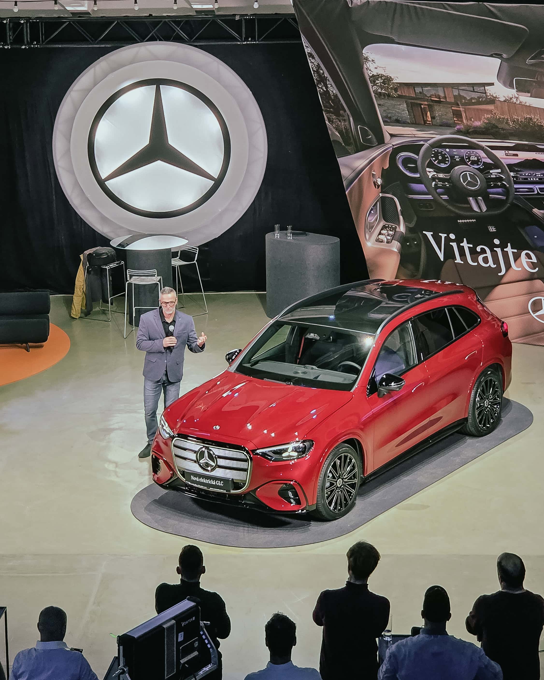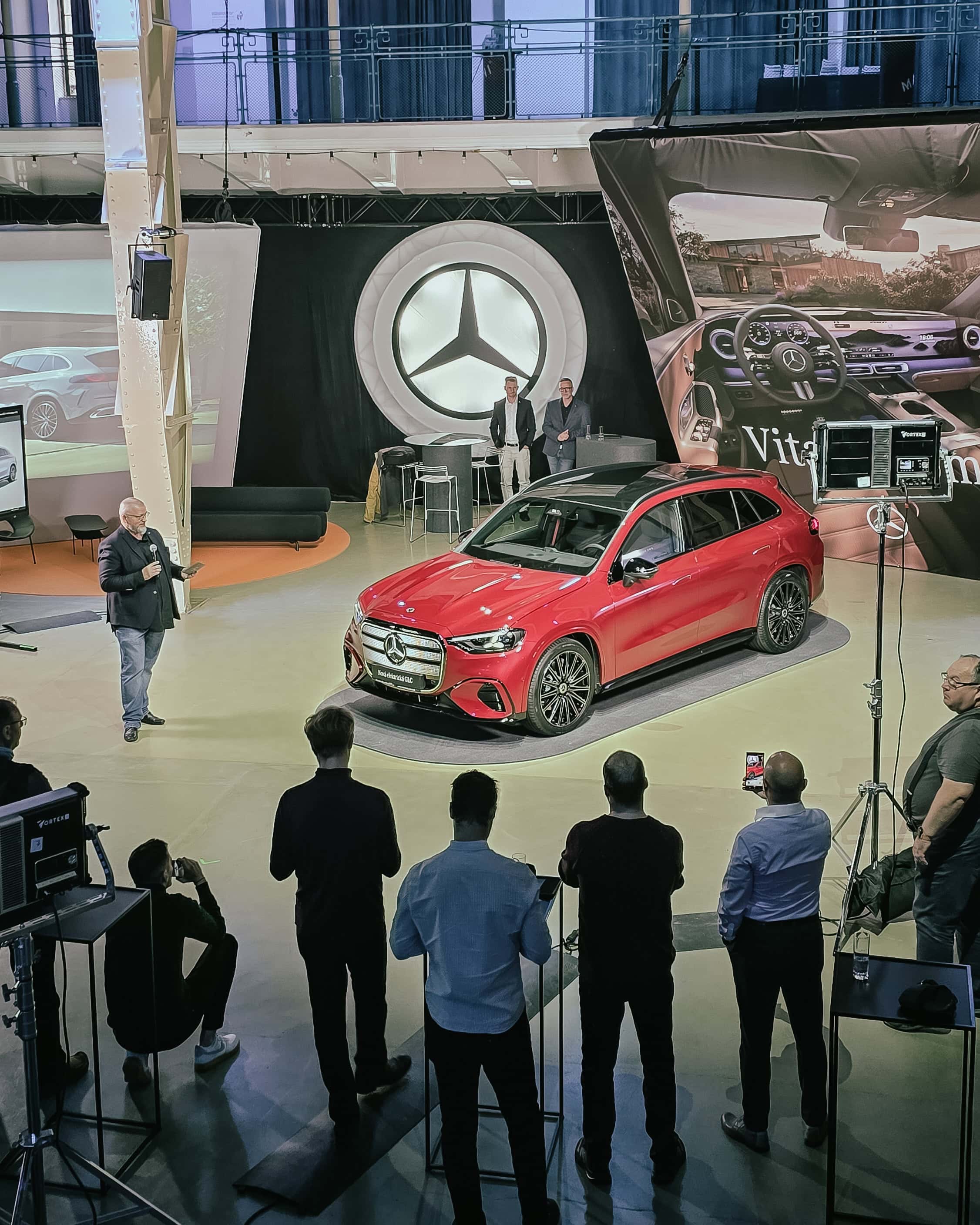 A keďže išlo o statickú prezentáciu, pripomenuli sme si hodnoty, ktorými sa snaží nové GLC ohúriť. Verzia GLC 400 4MATIC má výkon až 360 kW a stovku dá za približne 4,3 sekundy. Batéria s kapacitou 94 kWh sľubuje dojazd až do 713 kilometrov podľa WLTP. Úsmevný však bol dojazd, ktorý sme videli na časti obrovského dispelja pred vodičom. Pri 94 % nabitej batérii vraj 999 km. Išlo o predprodukčnú vzorku, takže tieto údaje berieme s rezervou, i keď možno sa pokúsim aspoň 700 km teoretickej hodnote dojazdu v reálnom teste priblížiť.
