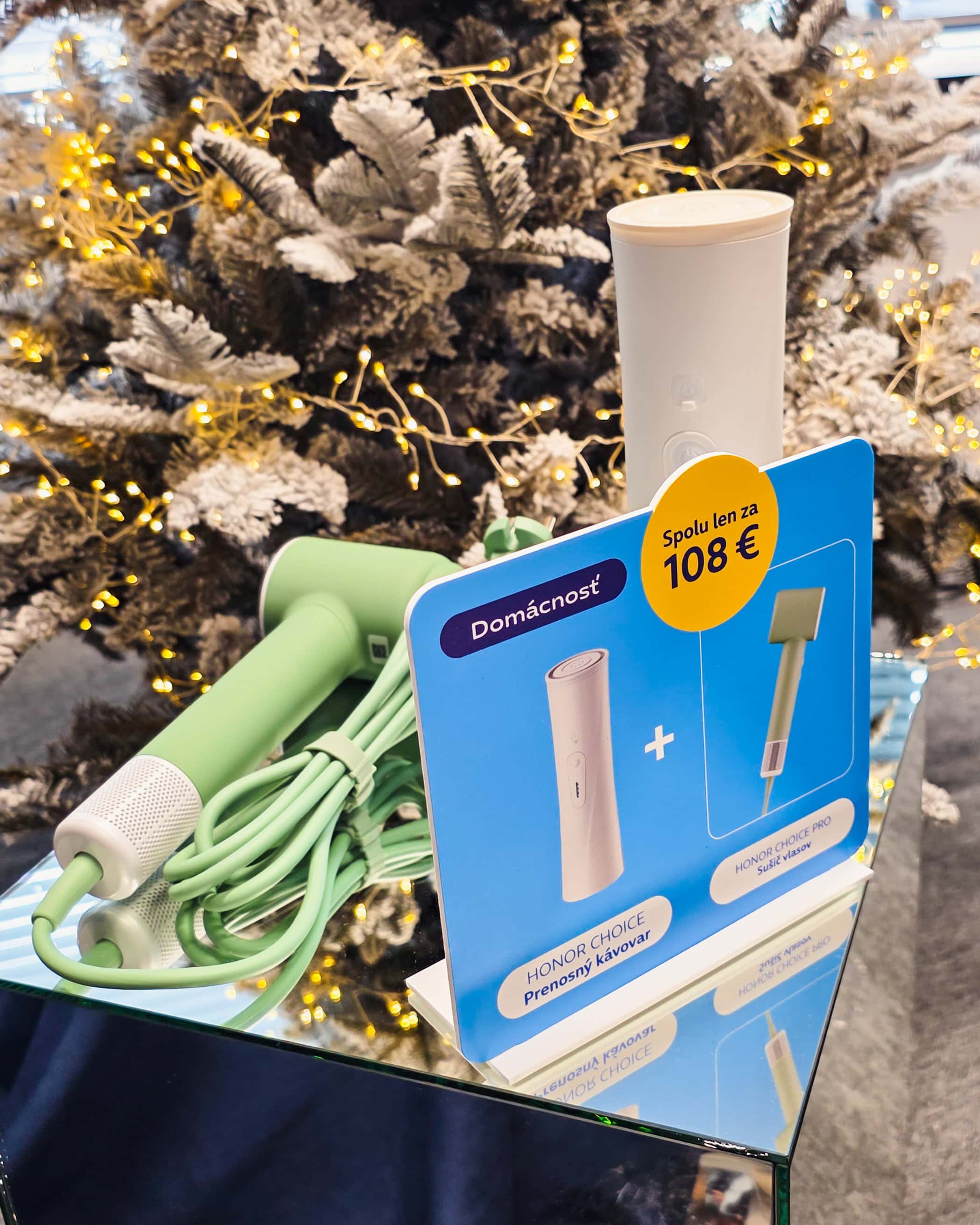 Dokonca aj taký gadget, ako prenosný kávovať Honor Choice Coffe Maker môžete mať na cestách vďaka ponuke, kde ho za 108 € dostanete aj s Honor Choice Pro sušičom vlasov.