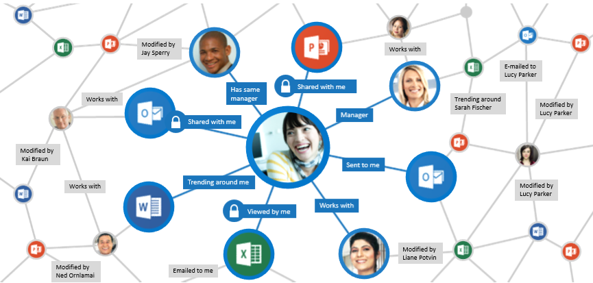 Posledným a zároveň tretím pilierom inteligentných riešení pre vašu spoločnosť je produkt Office Delve, ktorý prináša prispôsobený obsah zo služieb Office 365. Patrí medzi ne OneDrive for Business, SharePoint, Exchange, Yammer a iné.