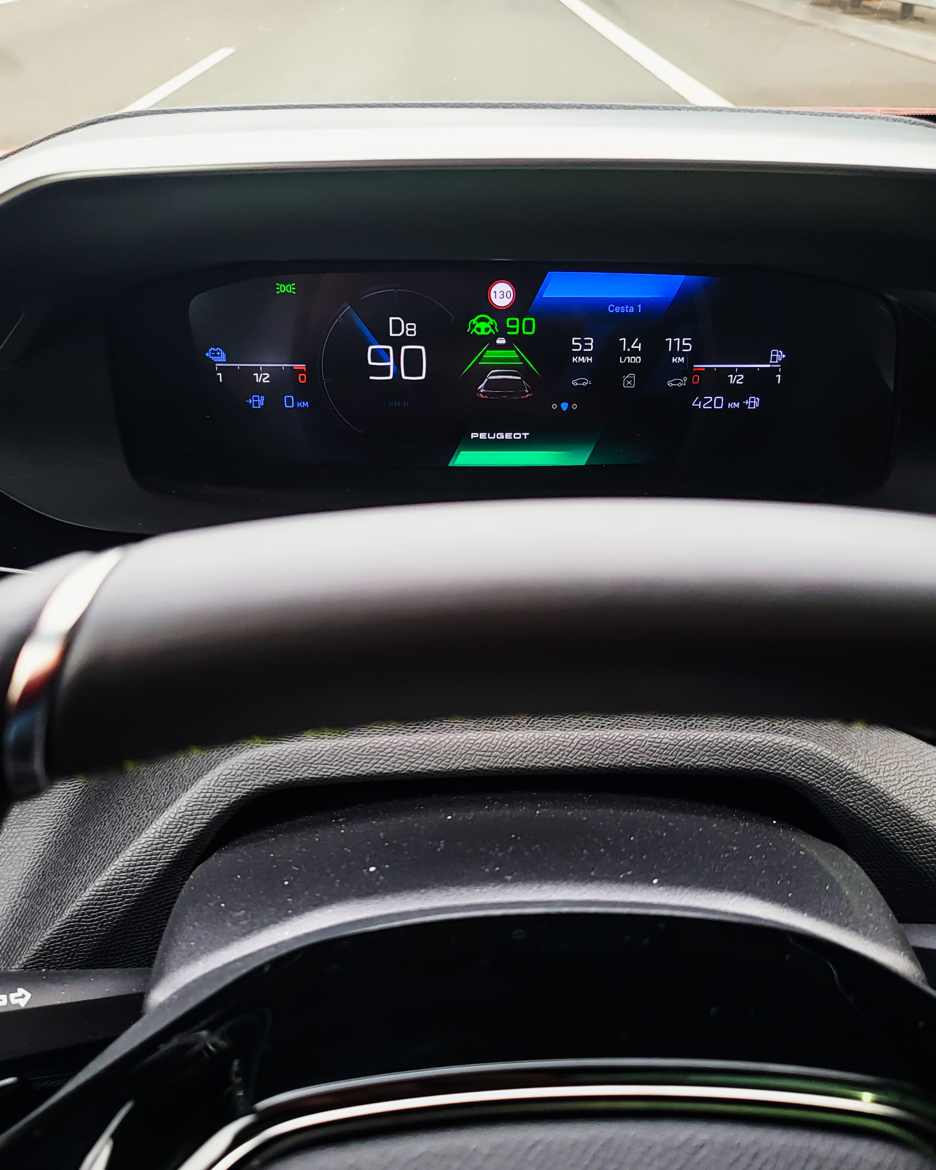 Často kritizovaný malý volant je pre mňa absolútne OK. Dokonca pri šoférovaní Peugeotu mám pocit, akoby som šoféroval nejaký monopost, je to vcelku návykové. Rovnako ako 3D displej pred vami. Ja ho nevypínam, pretože ho Peugeot urobil plne užívateľsky prívetivý. Aj tu tak máte pocit, akoby ste sedeli v aute budúcnosti. A to som zvyknutý na head-up displeje.