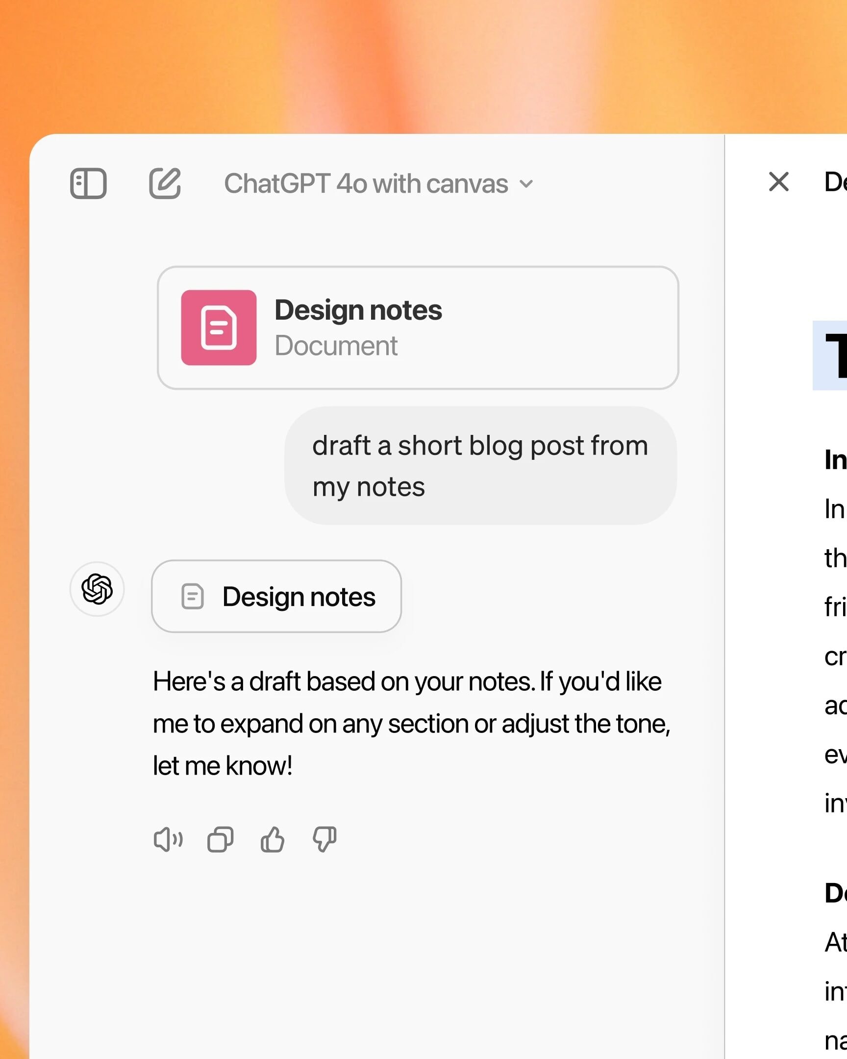 OpenAI tak po vzore konkurenčnej spoločnosti Anthropic a jej funkcie Artifacts v četbotovi Claude AI prináša do ChatGPT funkciu Canvas. Jedná sa o nové používateľské prostredie, v ktorom sa rozhovor s četbotom oddeľuje od obsahu, ktorý pre vás četbot vygeneroval.