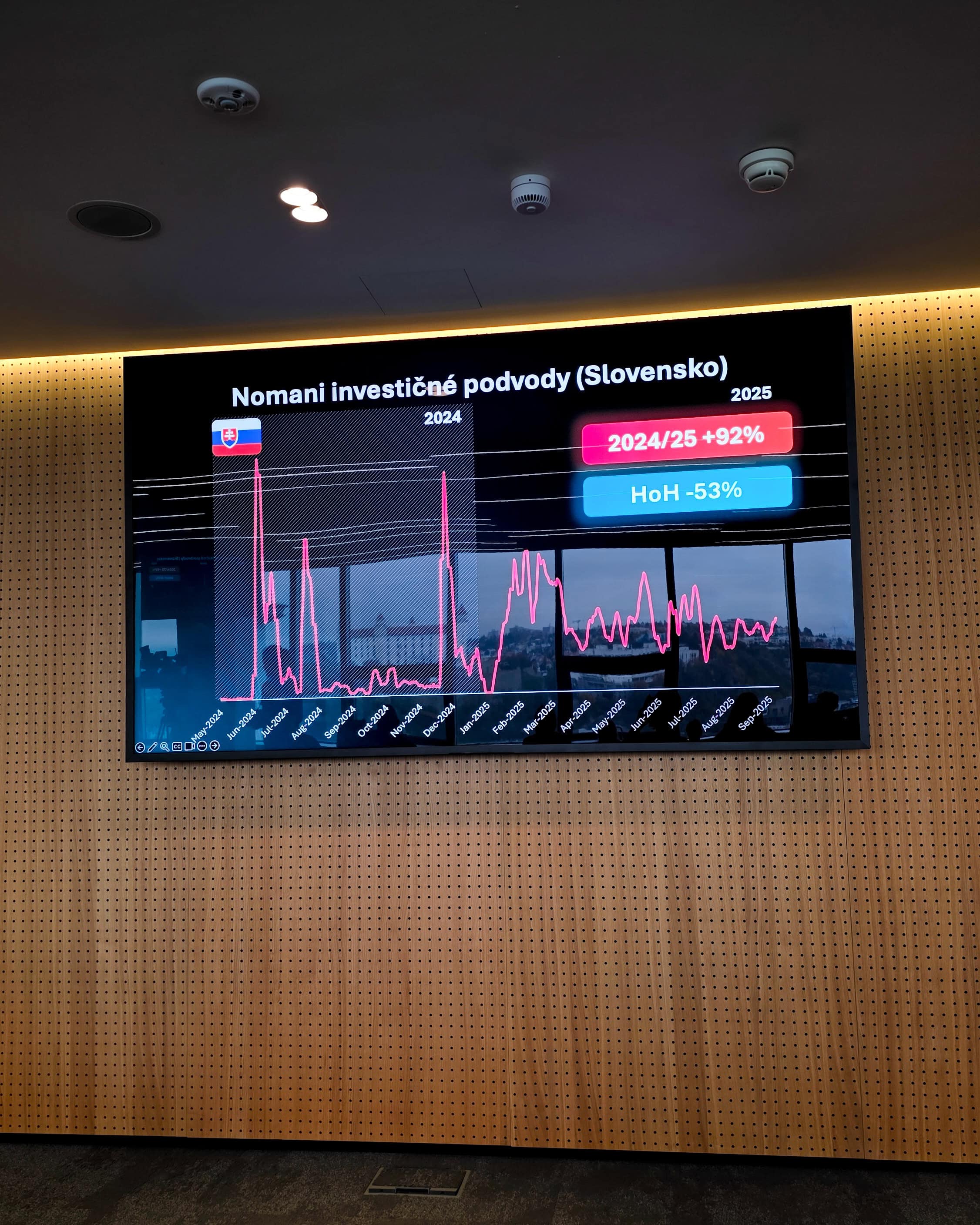 Aj vďaka umelej inteligencii pribúda množstvo finančných podvodov nielen vo svete, ale aj na Slovensku. Dokonca by sa mohlo zdať, že naša krajina patrí medzi tie, ktoré sú akýmsi „laboratóriom“, kde si podvodníci skúšajú nové formy útokov. Ak uspejú, rozšíria sa do celého sveta. Len na prelome rokov 2024/2025 sa počet finančných podvodov na Slovensku s tématikou investovania zvýšil o 92 %. Pre porovnanie, vo svete je evidovaný nárast o +30 %. Dobrou správou ale je, že klesá úspešnosť takýchto útokov, a to aj vďaka vzdelávaniu a obozretnosti verejnosti. Totiž počet úspešných pokusov o okradnutie klesol o 53 %, čo je dobrý výsledok. Čím viac budeme opatrní, tým viac podvodníkov neuspeje.