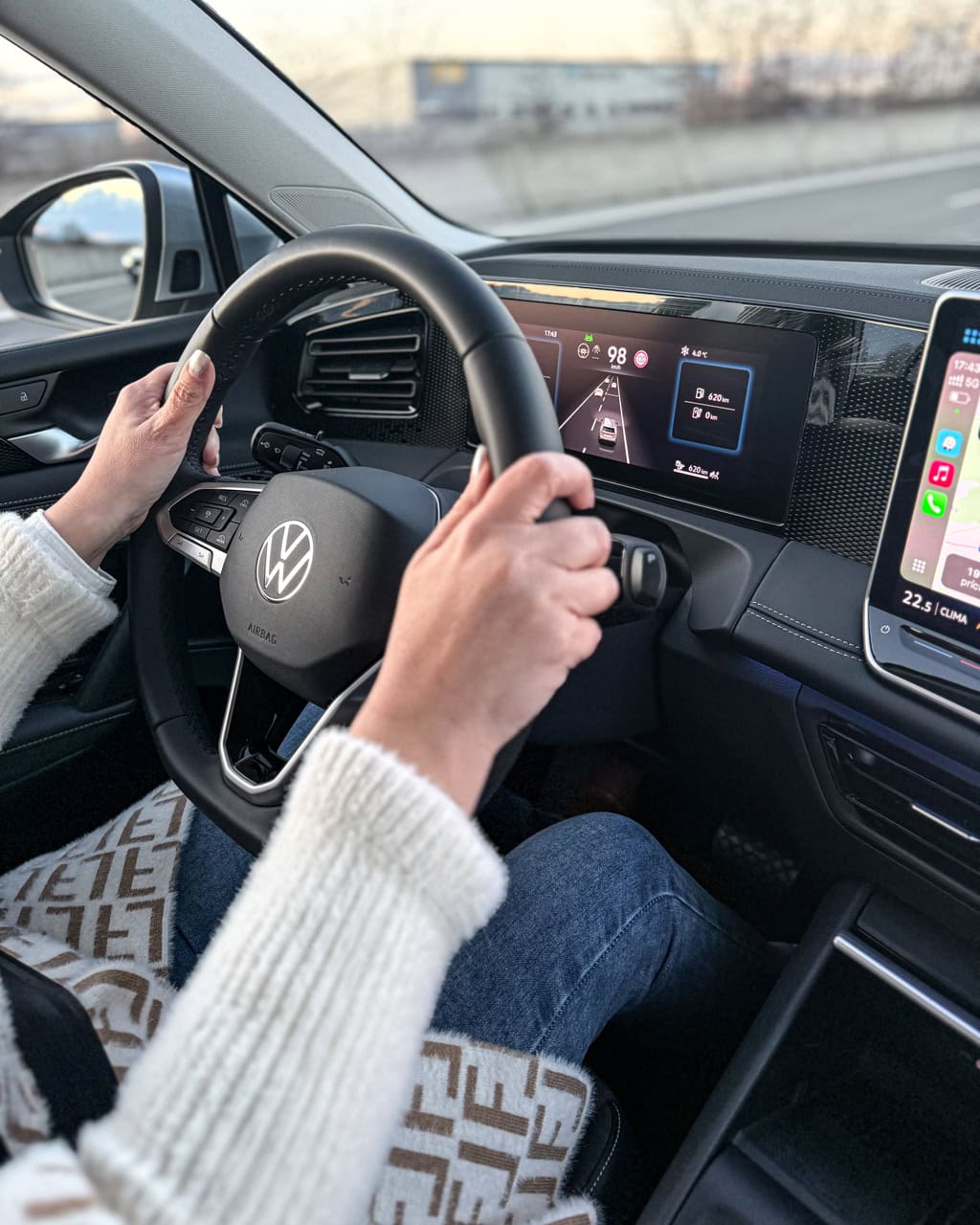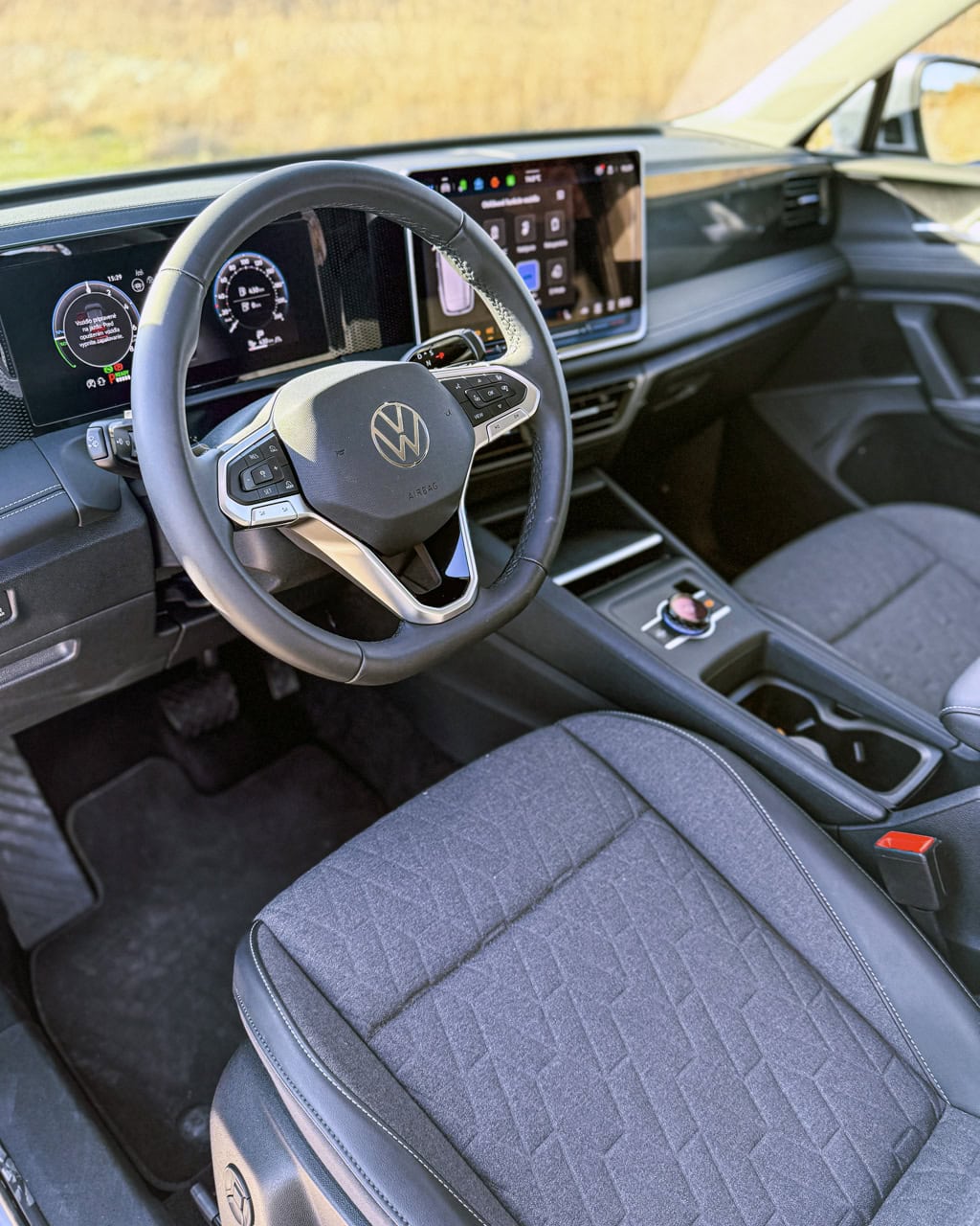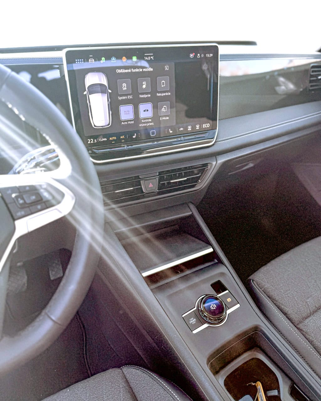 Pod prístrojovou doskou by ste márne hľadali fyzické tlačidlá, napríklad na reguláciu klimatizácie, vyhrievanie a chladenie sedadiel. Všetko sa ovláda dotykovo, čo nie je vždy a pre každého najžiadanejším riešením. Iba na stredovom tuneli nájdete veľký otočný ovládač určený na reguláciu hlasitosti s funkciou prepínania jazdných režimov.