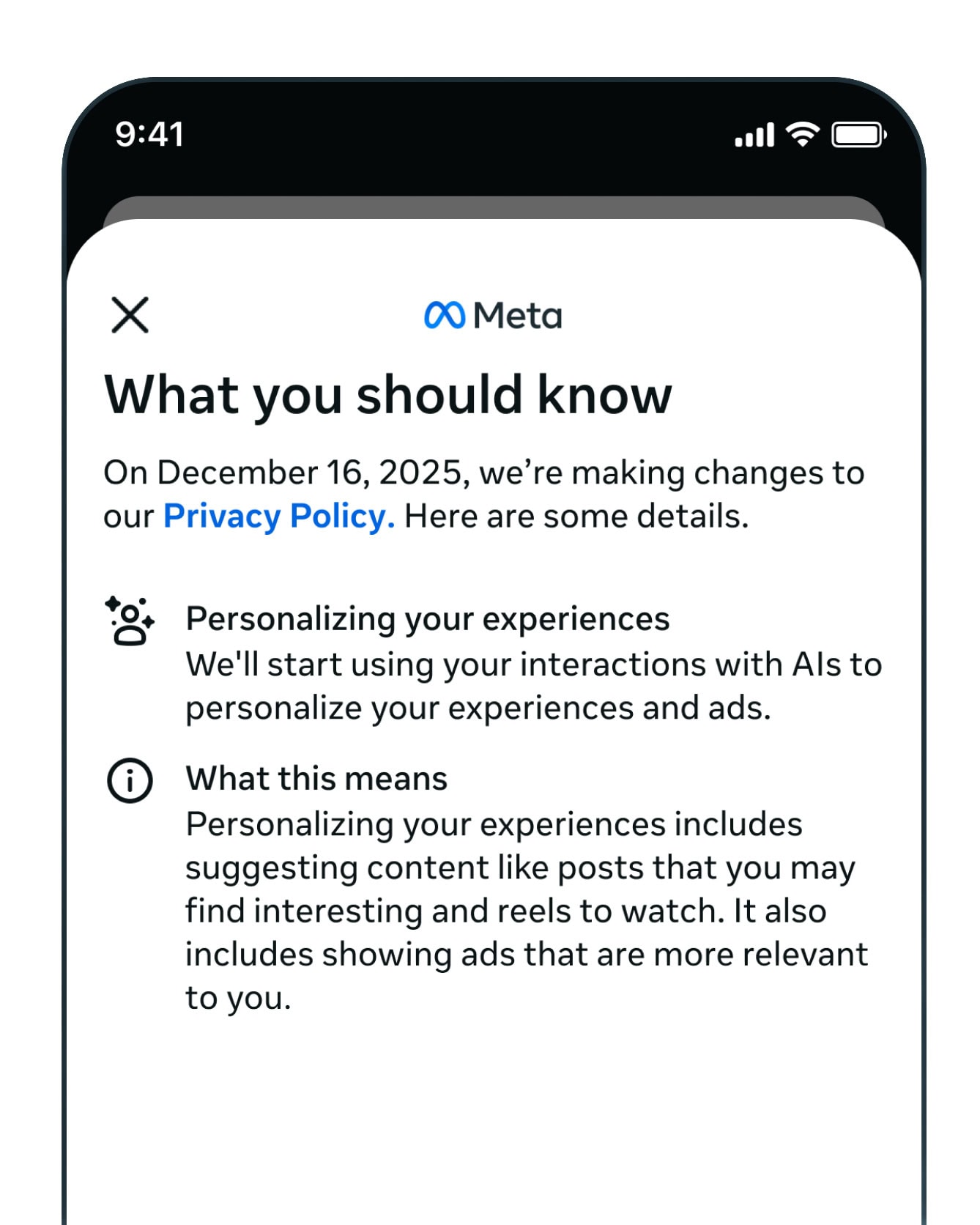 Používatelia budú o tejto zmene informovaní prostredníctvom notifikácií a e-mailov od 7. októbra, avšak najdôležitejším faktom je, že túto novú formu sledovania nebude možné odmietnuť. Jediný spôsob, ako sa jej vyhnúť, je úplne prestať používať funkcie umelej inteligencie od Mety.