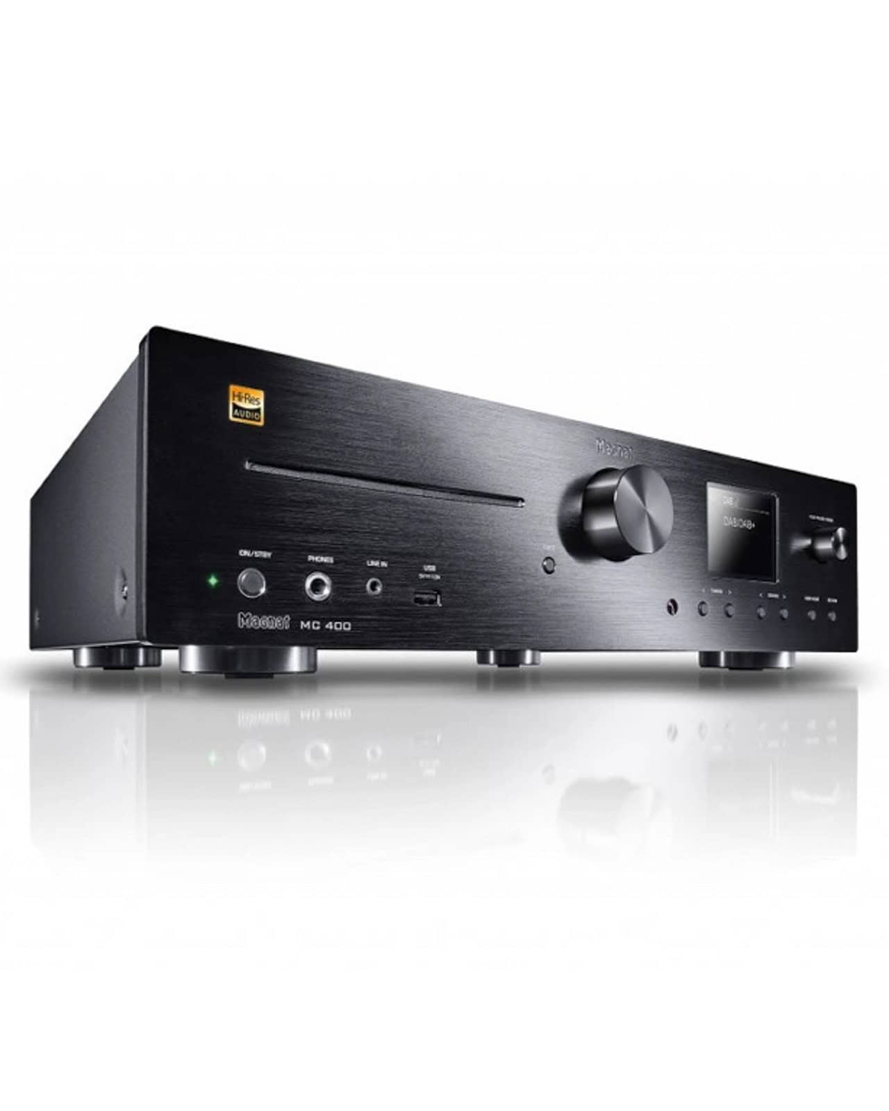 Podporuje prehrávanie CD, FM/DAB+ rádio, Bluetooth a nechýba ani USB vstup či digitálne konektory pre pripojenie ďalších zariadení. Vďaka tomu sa z modelu Magnat MC 400 stáva multimediálne centrum, ktoré zastúpi viacero samostatných komponentov.
