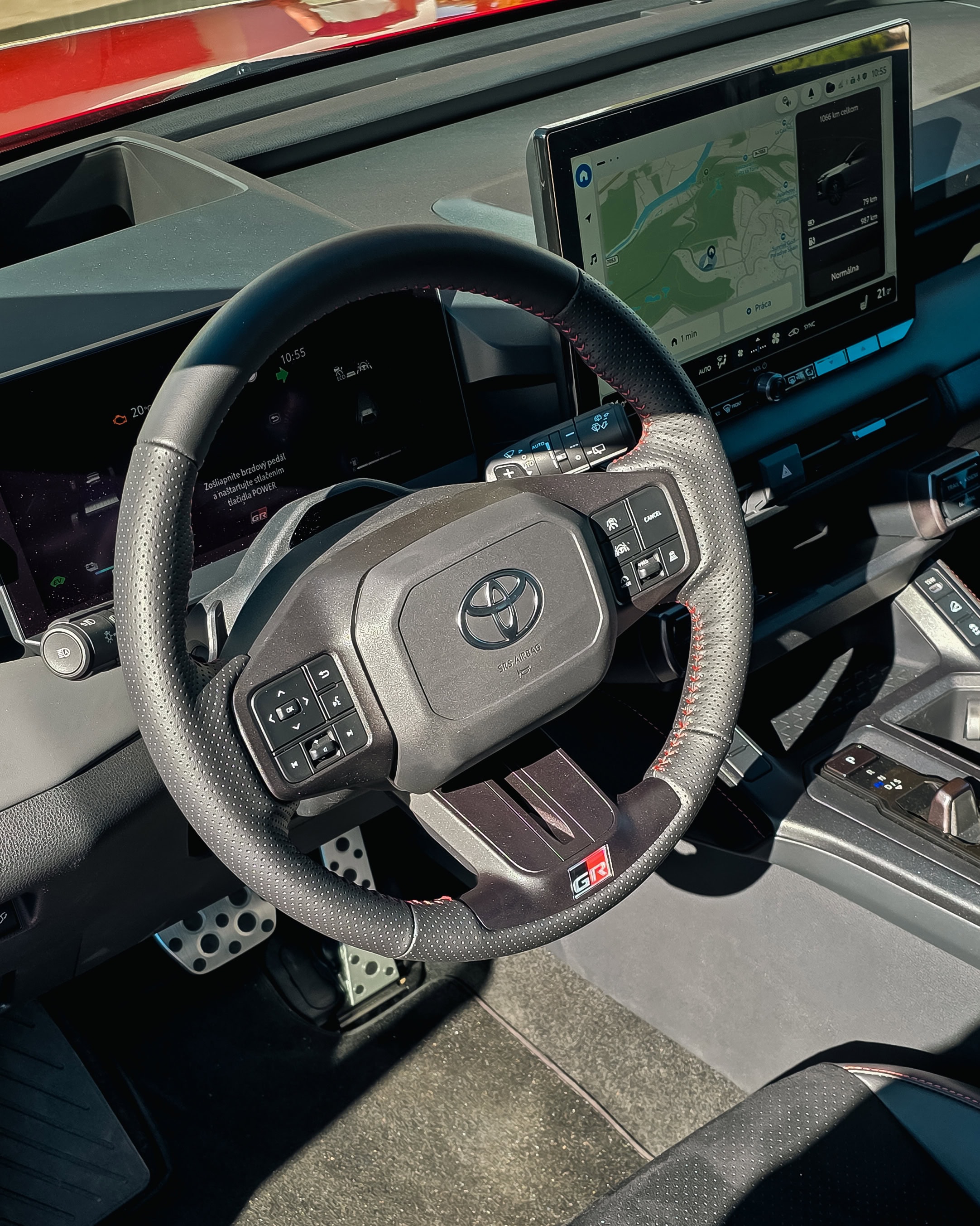 Rovno sme si na prvú jazdu vybrali najvýkonnejšiu plug-in hybridnú GR SPORT verziu s výkonom až 309 koní. Oplatí sa za 57 190 eur v exkluzívnej farbe červená – karmínová s čiernou strechou?