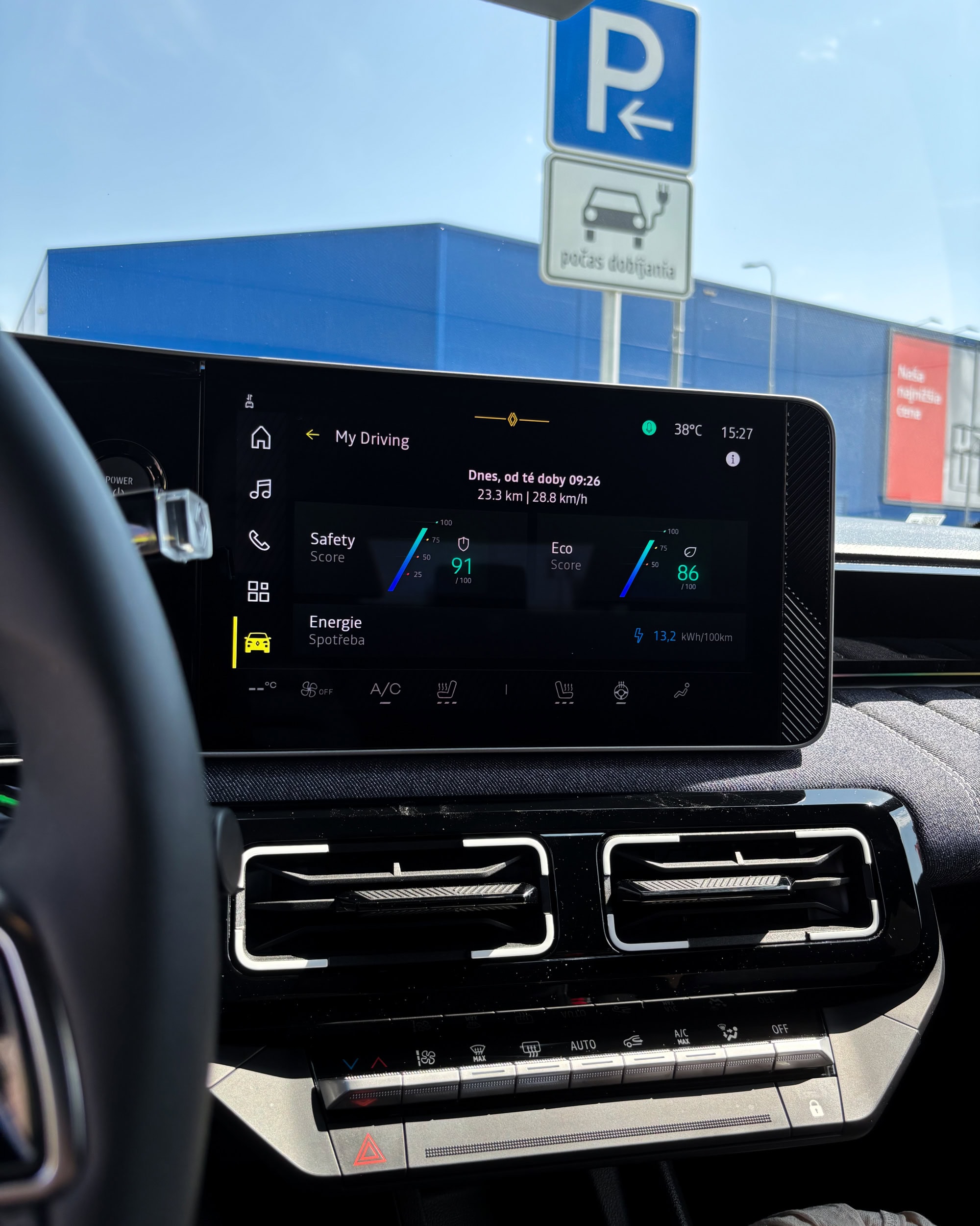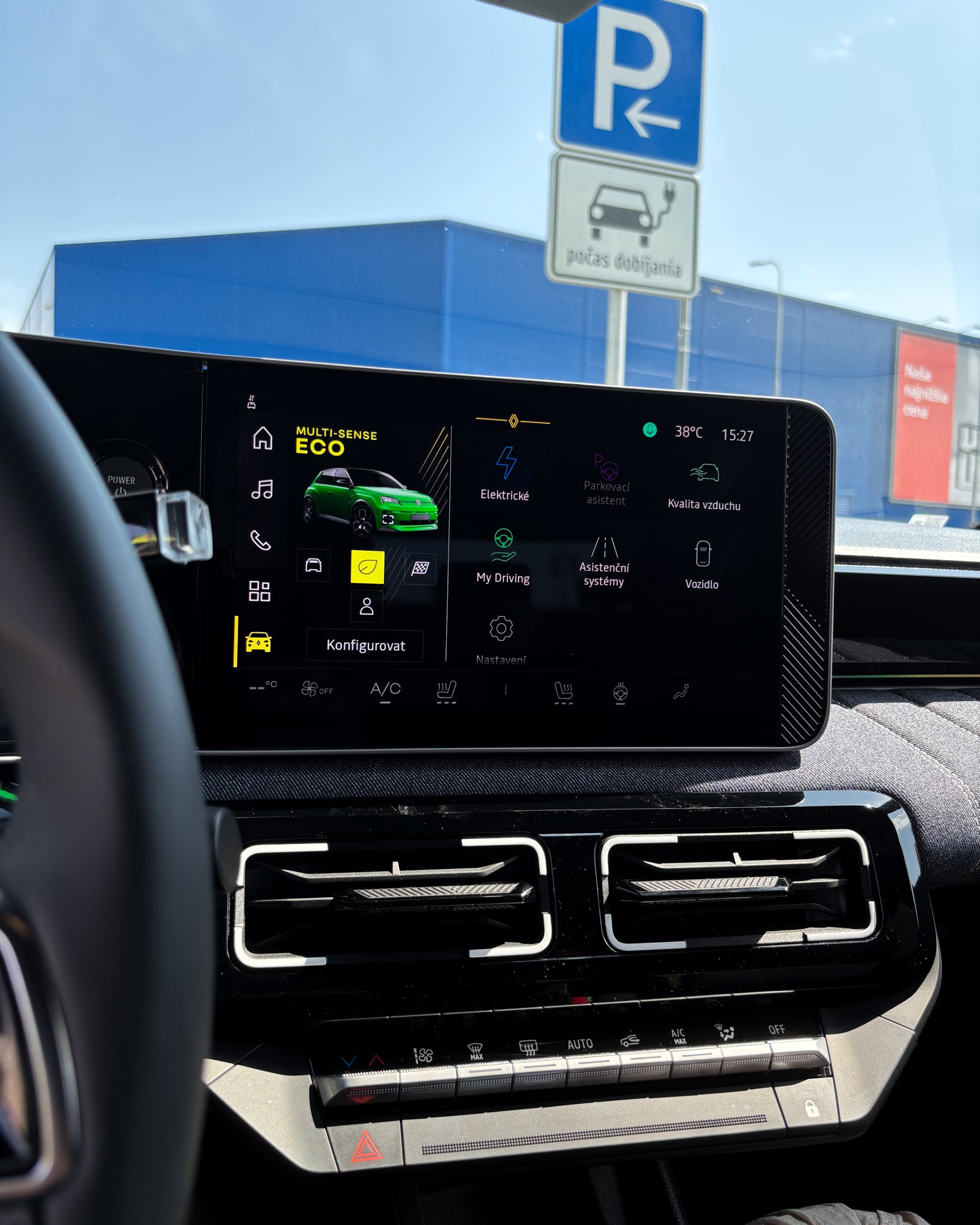 Za volantom však už prichádzajú napríklad aj v porovnaní so ZOE zásadné zmeny. Celkom nový systém – displej kokpitu ako aj infotainmentu. V prípade, že prechádzate priamo alebo s novými modelmi Renault nemáte skúsenosti, určite si chvíľu na všetko budete musieť zvykať. Síce som už sedel ako v Megane E-Tech, tak aj v Scenic E-Tech, stále mi chvíľku trvalo, kým som sa zorientoval najmä čo sa týka samotného kokpitu.