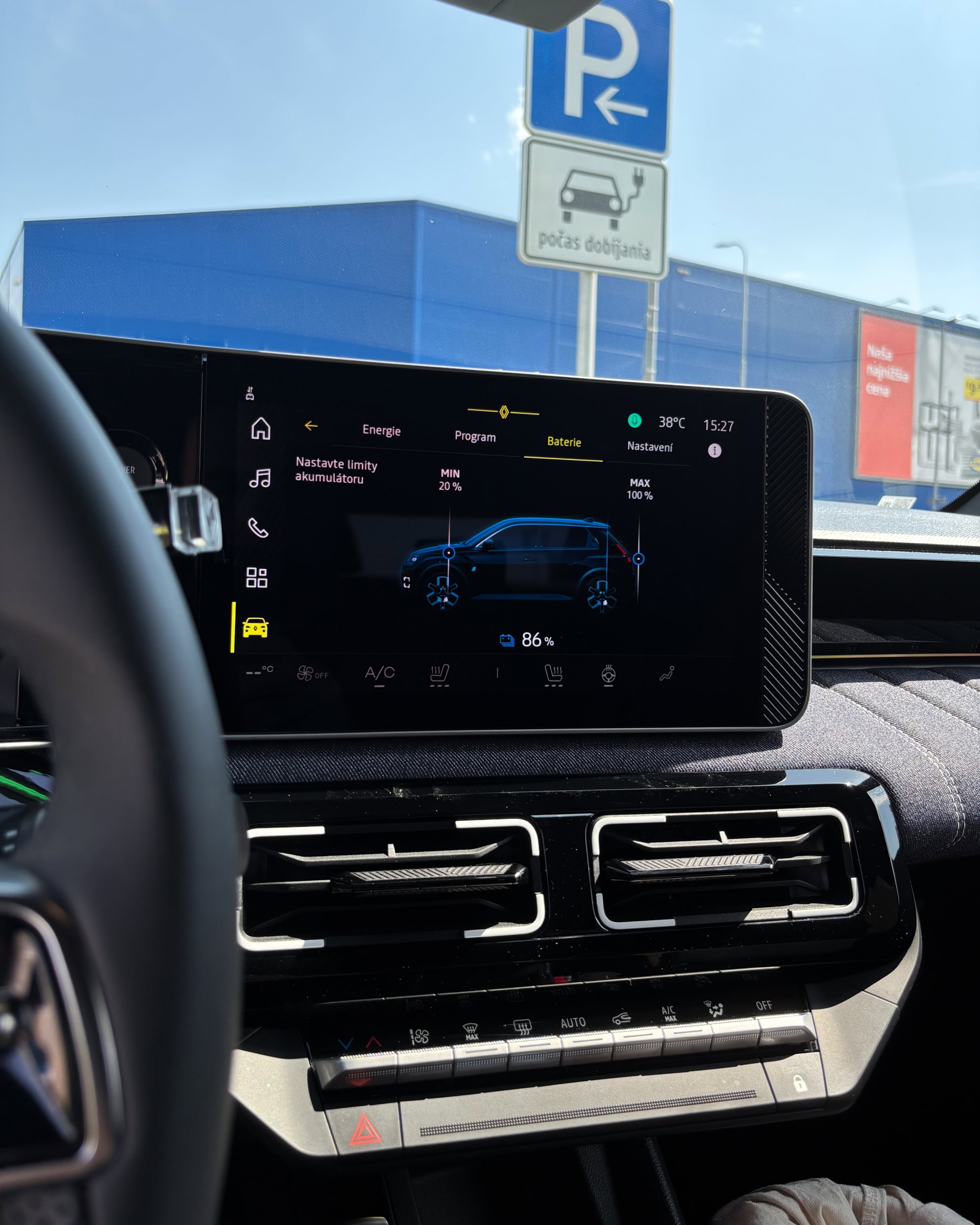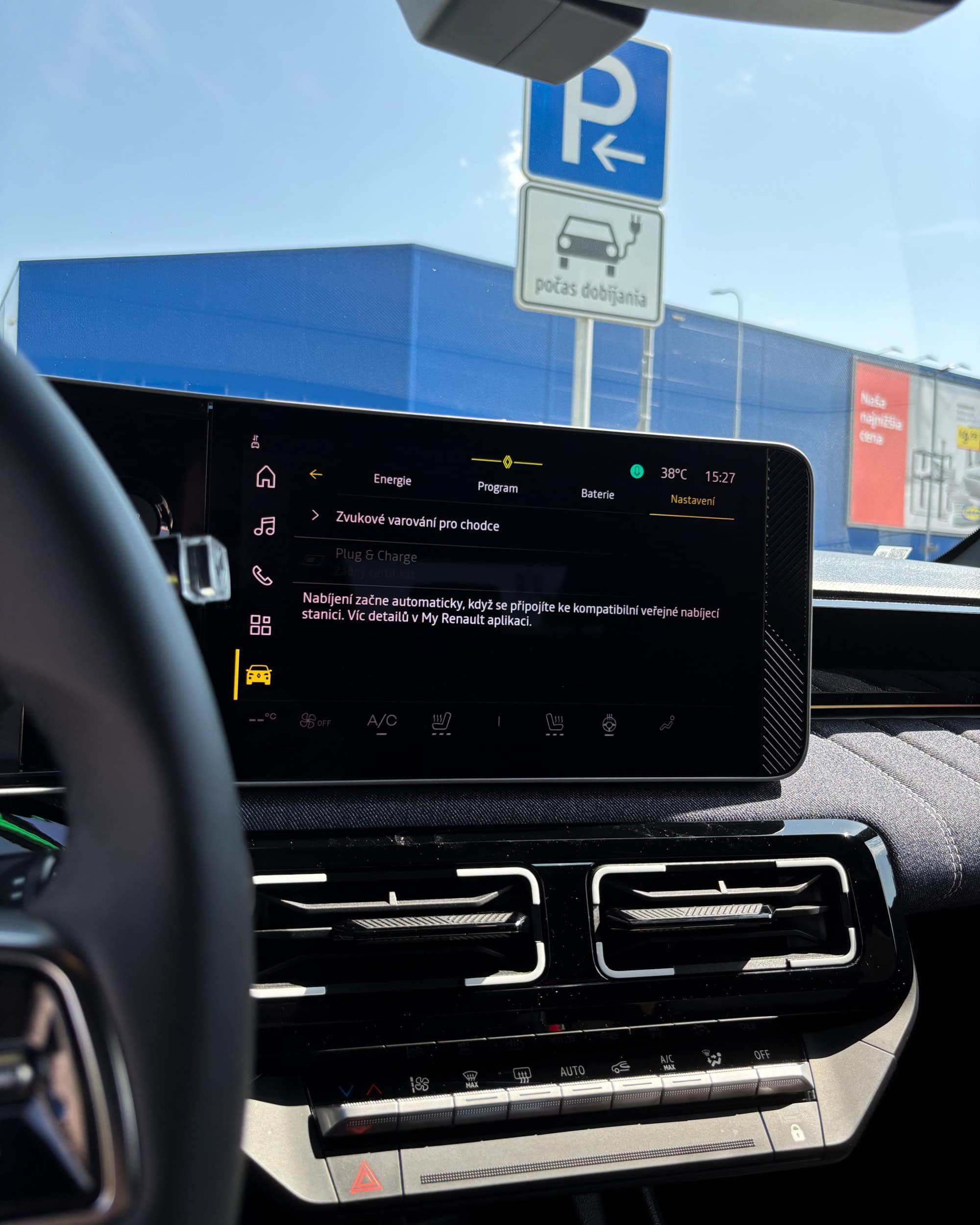Renault 5 podporuje ako Autocharge, tak aj moderný Plug&Charge. Prítomná je aj podpora pre V2L, vďaka čomu môžete využívať elektrickú energiu z batérie na bežné spotrebiče s odberom do 3,6 kW. Viete tak na miestach bez elektrickej energie, len s autom, napríklad grilovať, kosiť alebo napíliť drevo. Ide o celkom praktickú vec, ktorú napríklad ja osobne často využívam pri vysávaní auta.