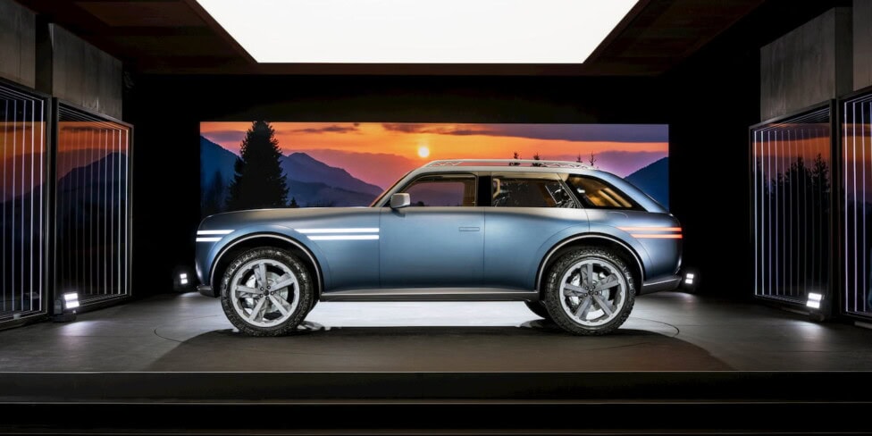 Značka Genesis pripravuje nový elektrický off-road SUV. Vyznačuje sa robustným dizajnom s výraznými kolesami a vysokou svetlou výškou, čo naznačuje silné terénne schopnosti. Vozidlo, upravený Genesis Electrified GV70, testoval „tím pre testovanie podvozkov“. Koncept by mal odhaliť novú éru značky v segmente e-SUV a konkurovať prémiovým modelom ako Ford Mustang Mach‑E alebo Volkswagen ID. Buzz.